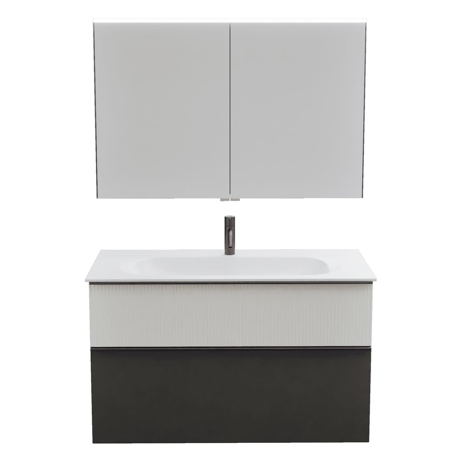 burgbad Fiumo 2.0 Badmöbelset 102 cm mit Waschtisch mit Unterschrank mit Griff G0200 und Spiegelschrank