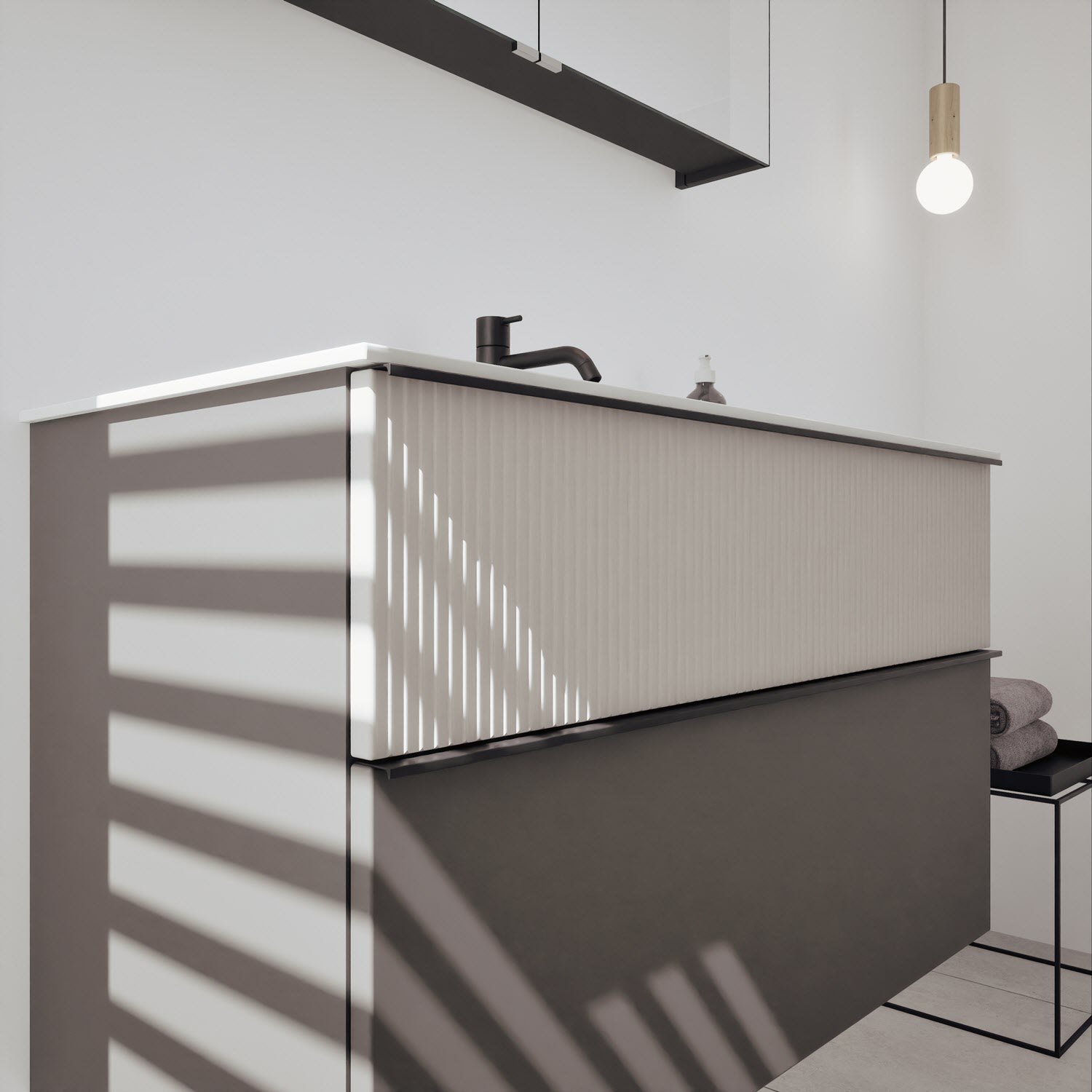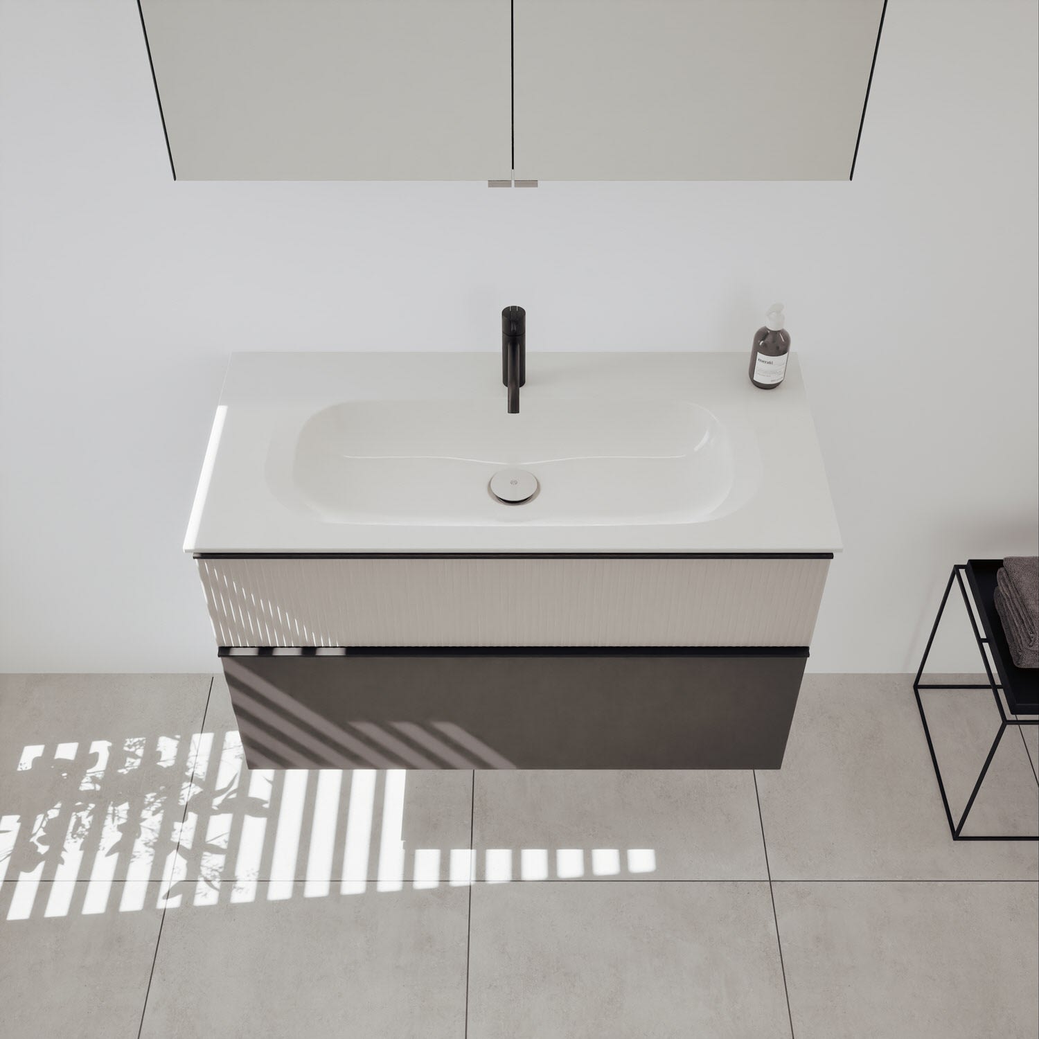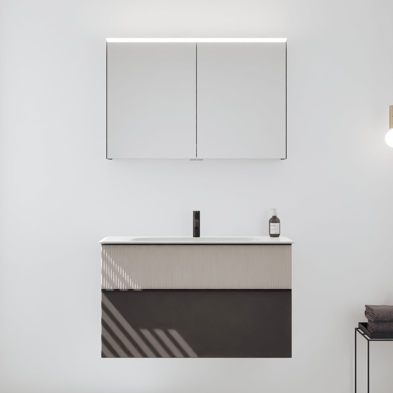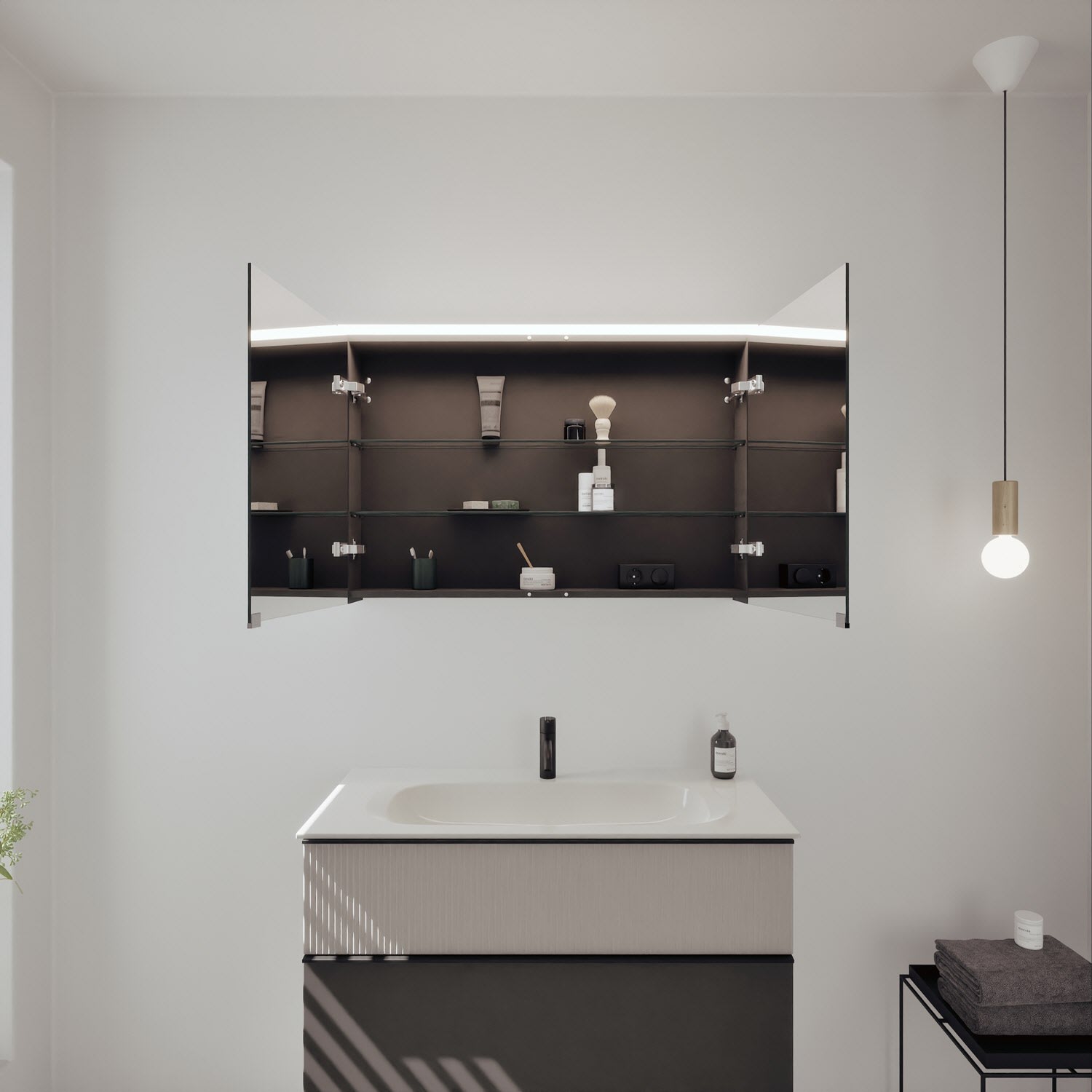 - Spiegelschrank, Waschtischunterschrank, Waschtisch, burgbad cleanFlow, Befestigung außer Stockschrauben