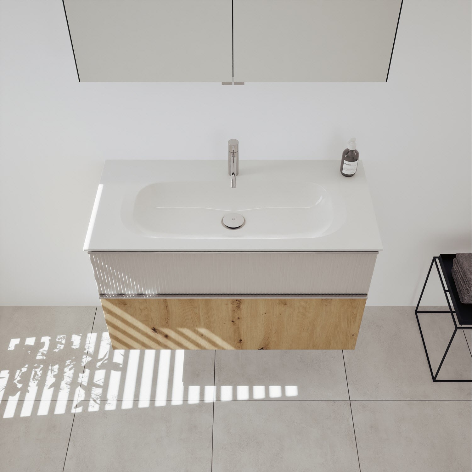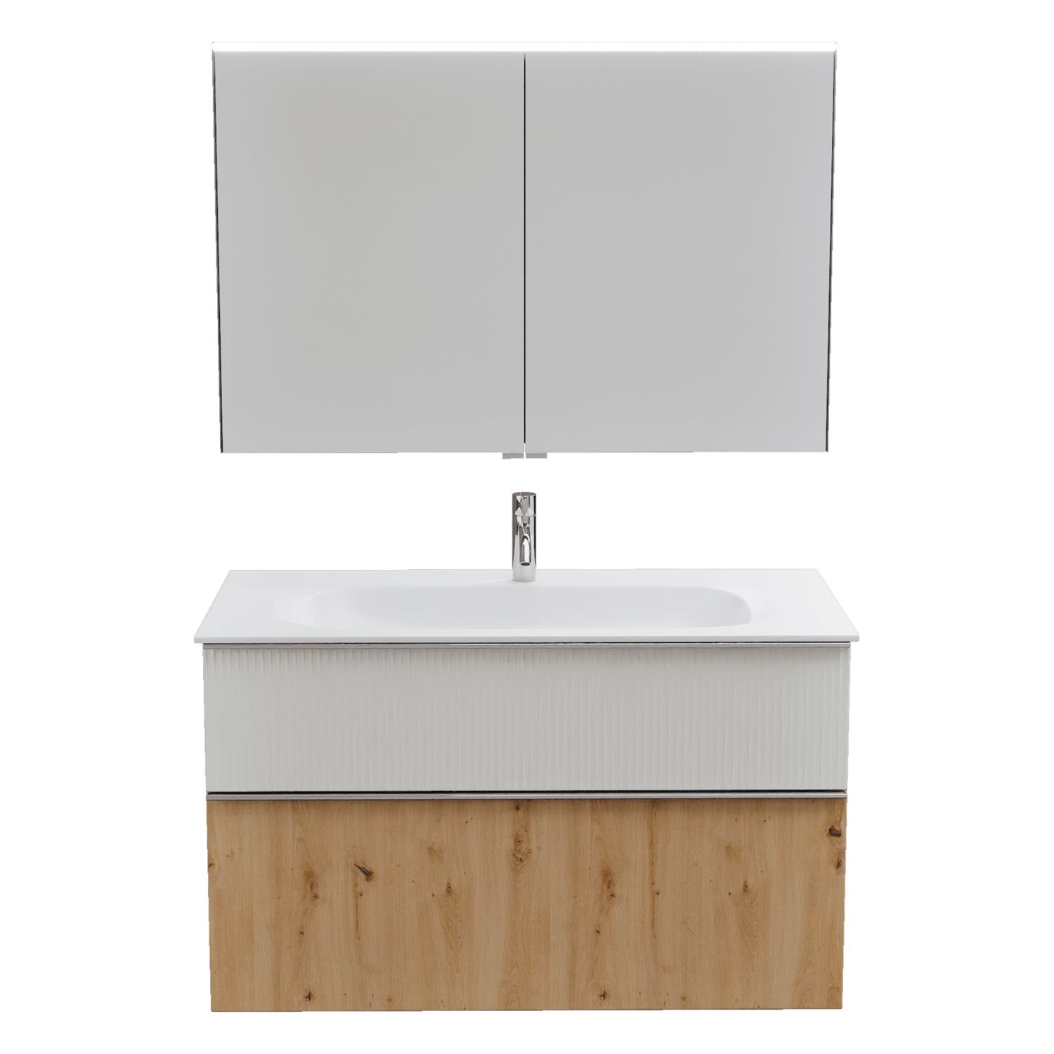 burgbad Fiumo 2.0 Badmöbelset 102 cm mit Waschtisch mit Unterschrank mit Griff G0146 und Spiegelschrank
