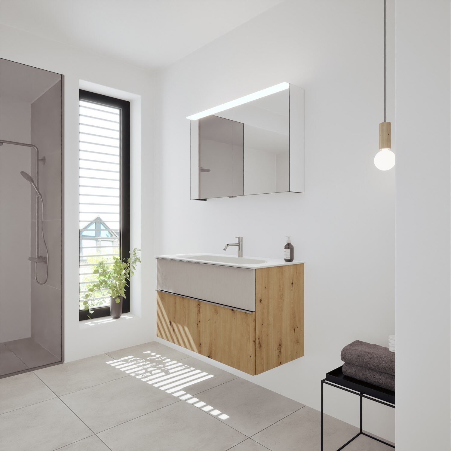 - Spiegelschrank, Waschtischunterschrank, Waschtisch, burgbad cleanFlow, Befestigung außer Stockschrauben