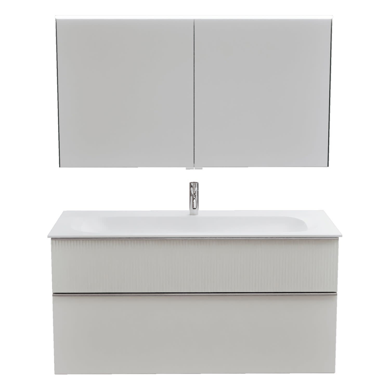 burgbad Fiumo 2.0 Badmöbelset 122 cm mit Waschtisch mit Unterschrank mit Griff G0146 und Spiegelschrank