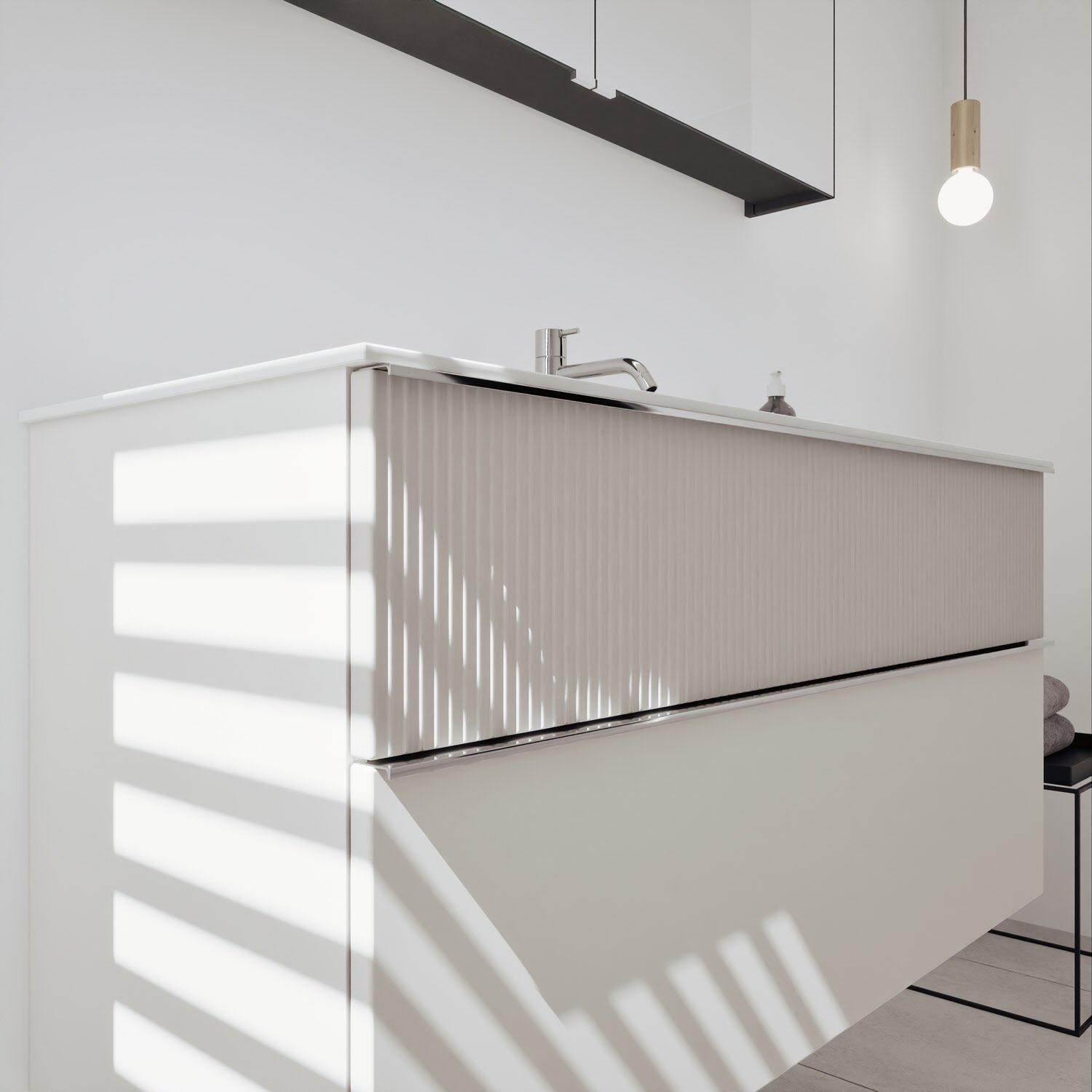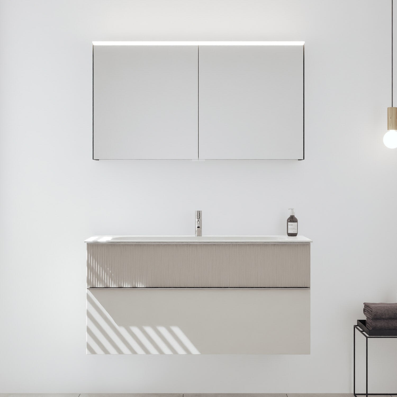 - Spiegelschrank, Waschtischunterschrank, Waschtisch, burgbad cleanFlow, Befestigung außer Stockschrauben