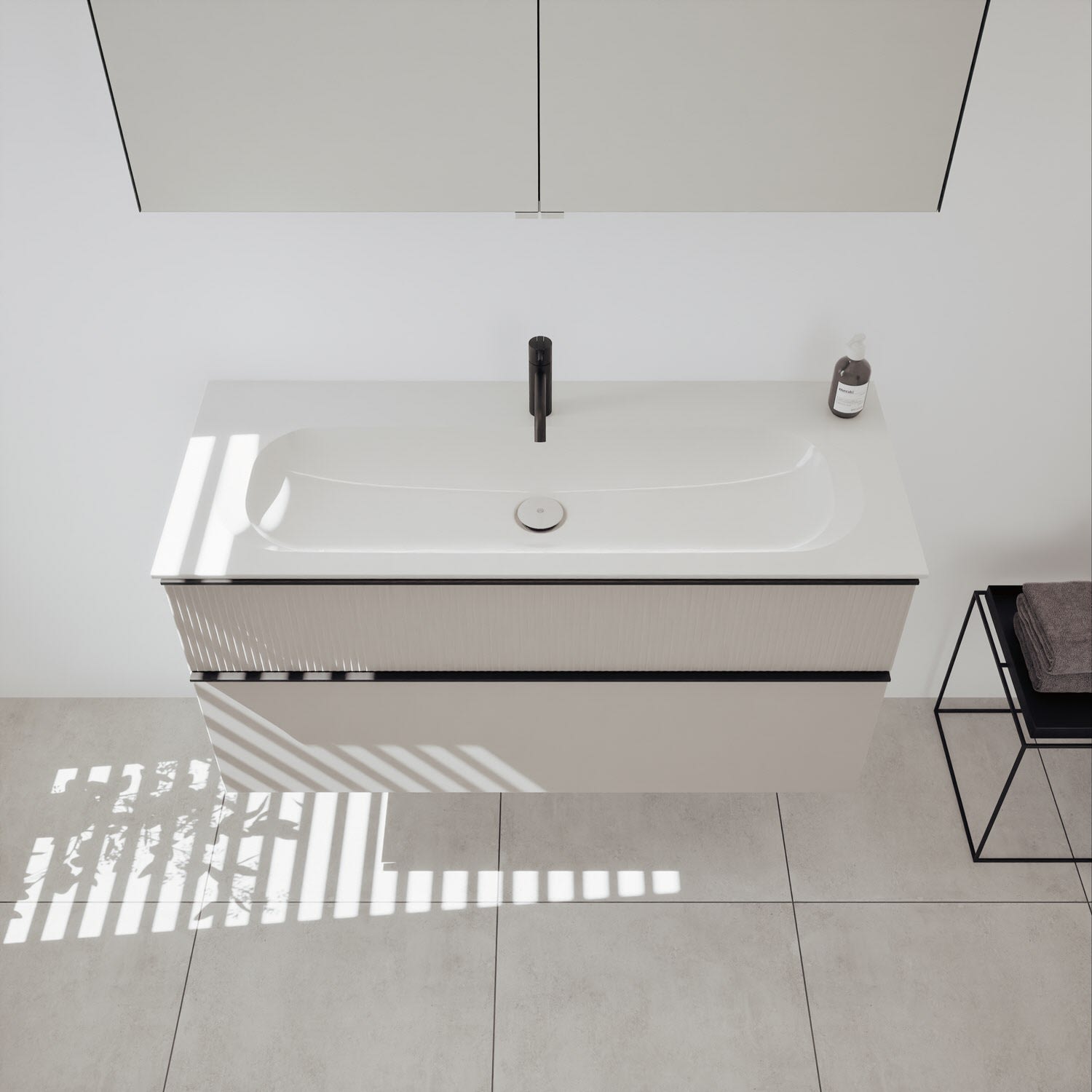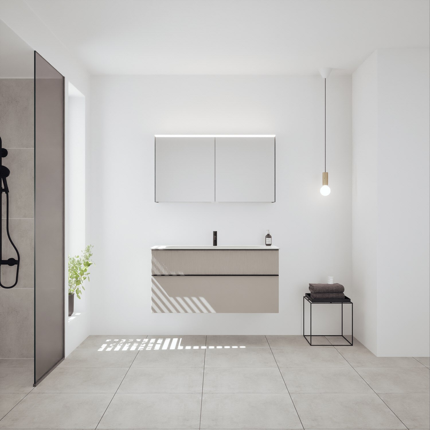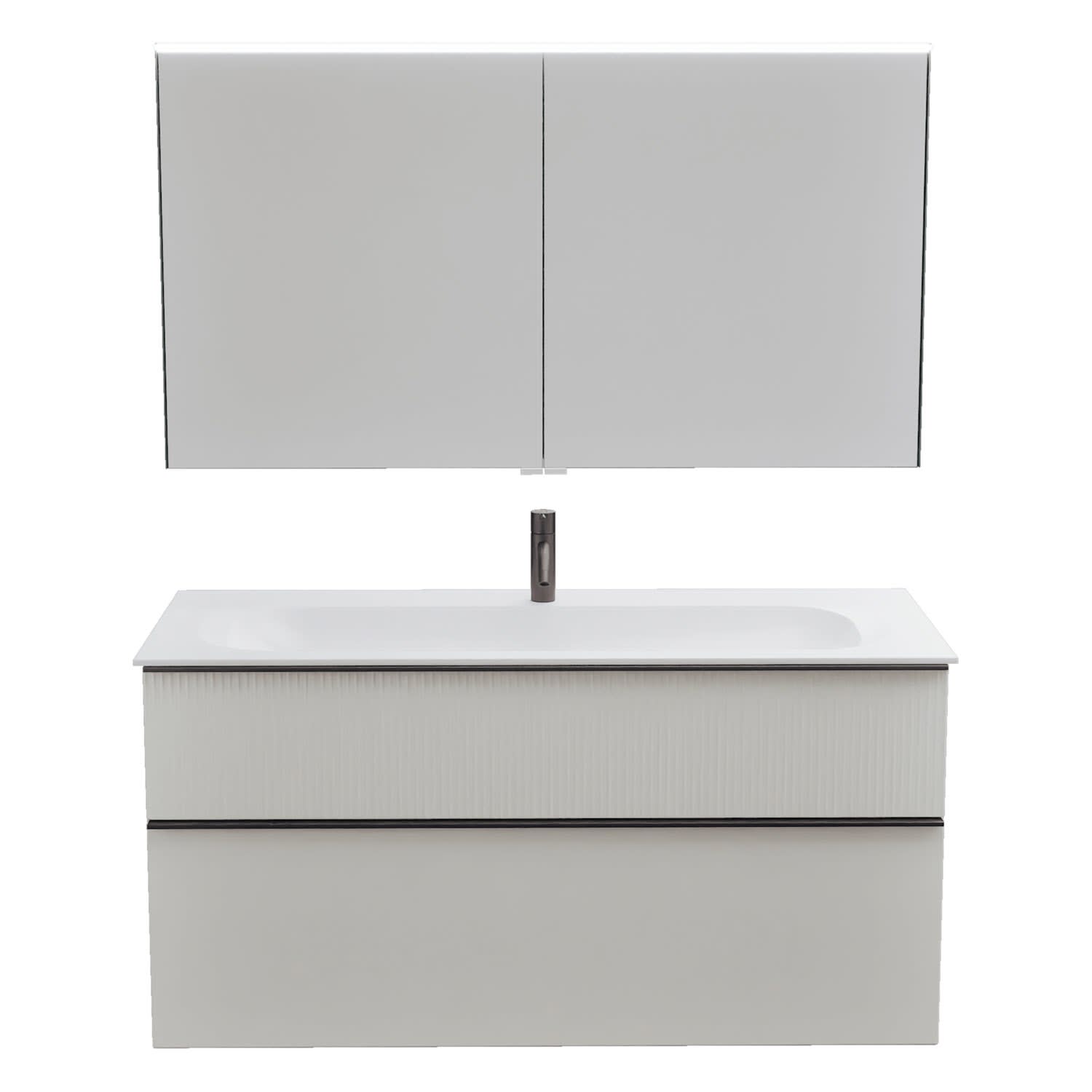 burgbad Fiumo 2.0 Badmöbelset 122 cm mit Waschtisch mit Unterschrank mit Griff G0200 und Spiegelschrank