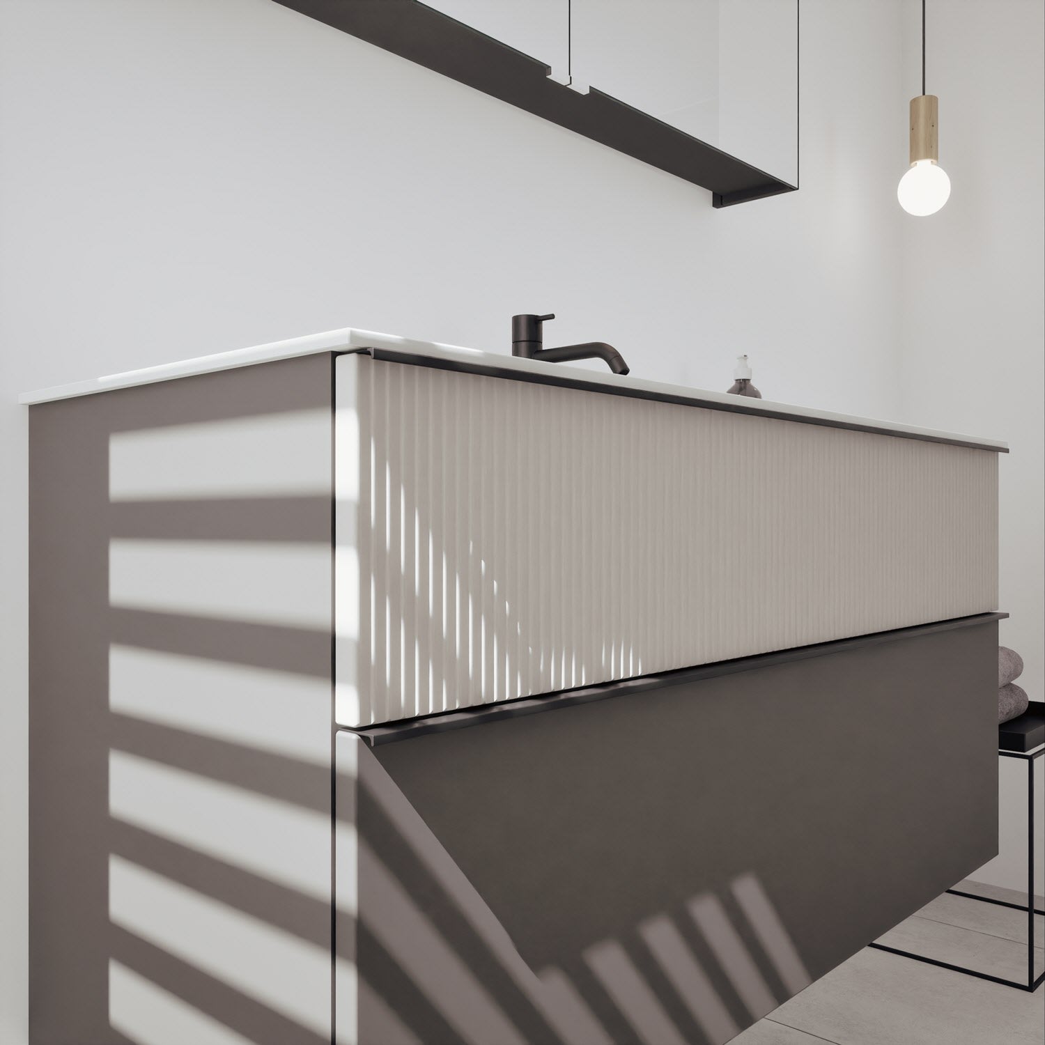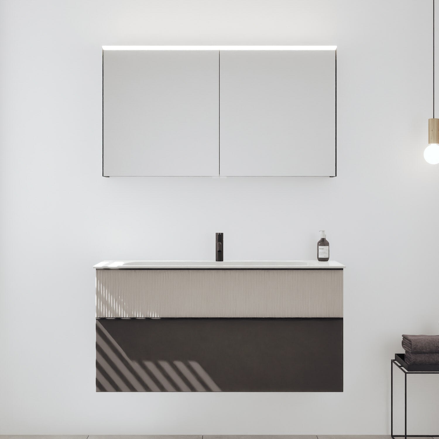 - Spiegelschrank, Waschtischunterschrank, Waschtisch, burgbad cleanFlow, Befestigung außer Stockschrauben