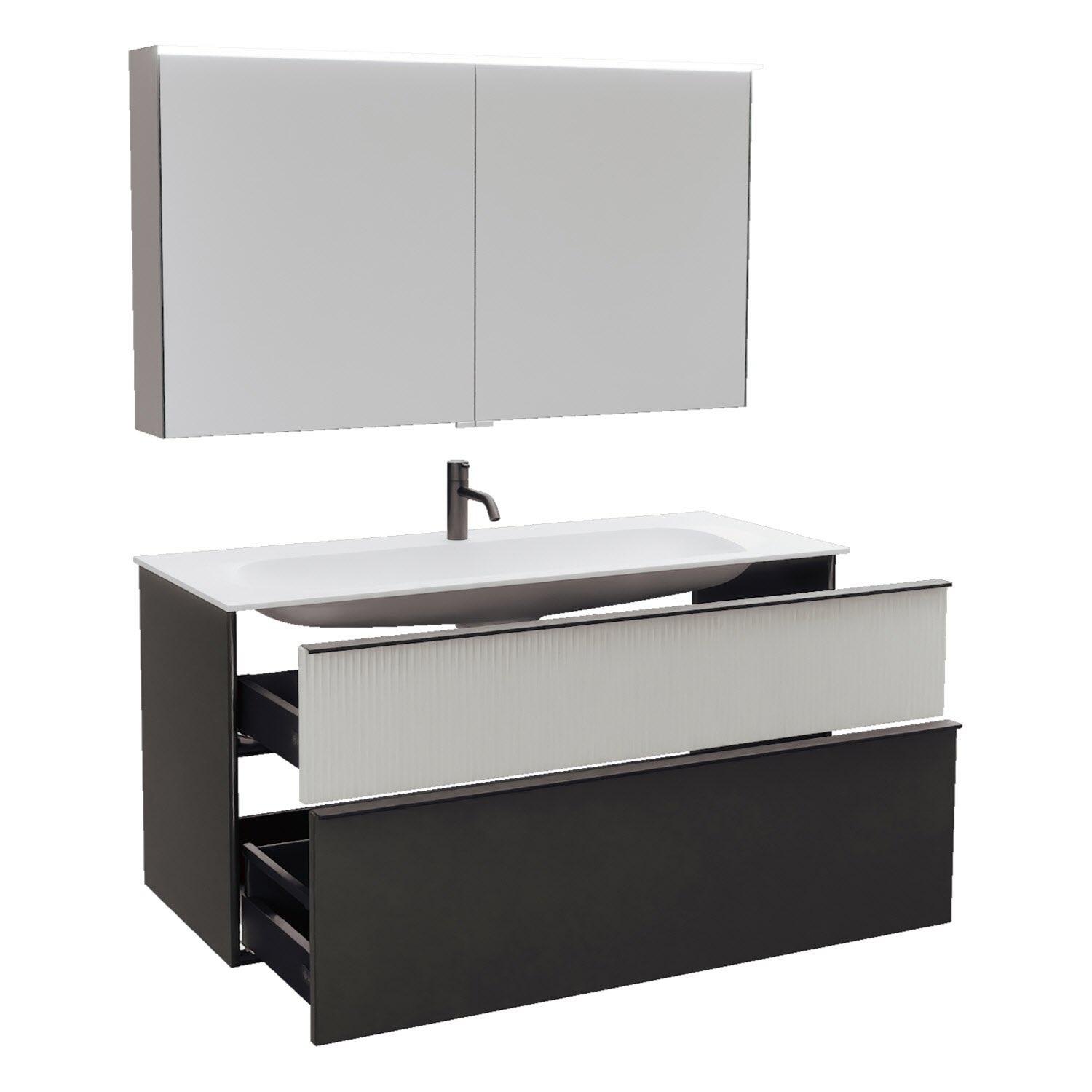 burgbad Fiumo 2.0 Badmöbelset 122 cm mit Waschtisch mit Unterschrank mit Griff G0200 und Spiegelschrank
