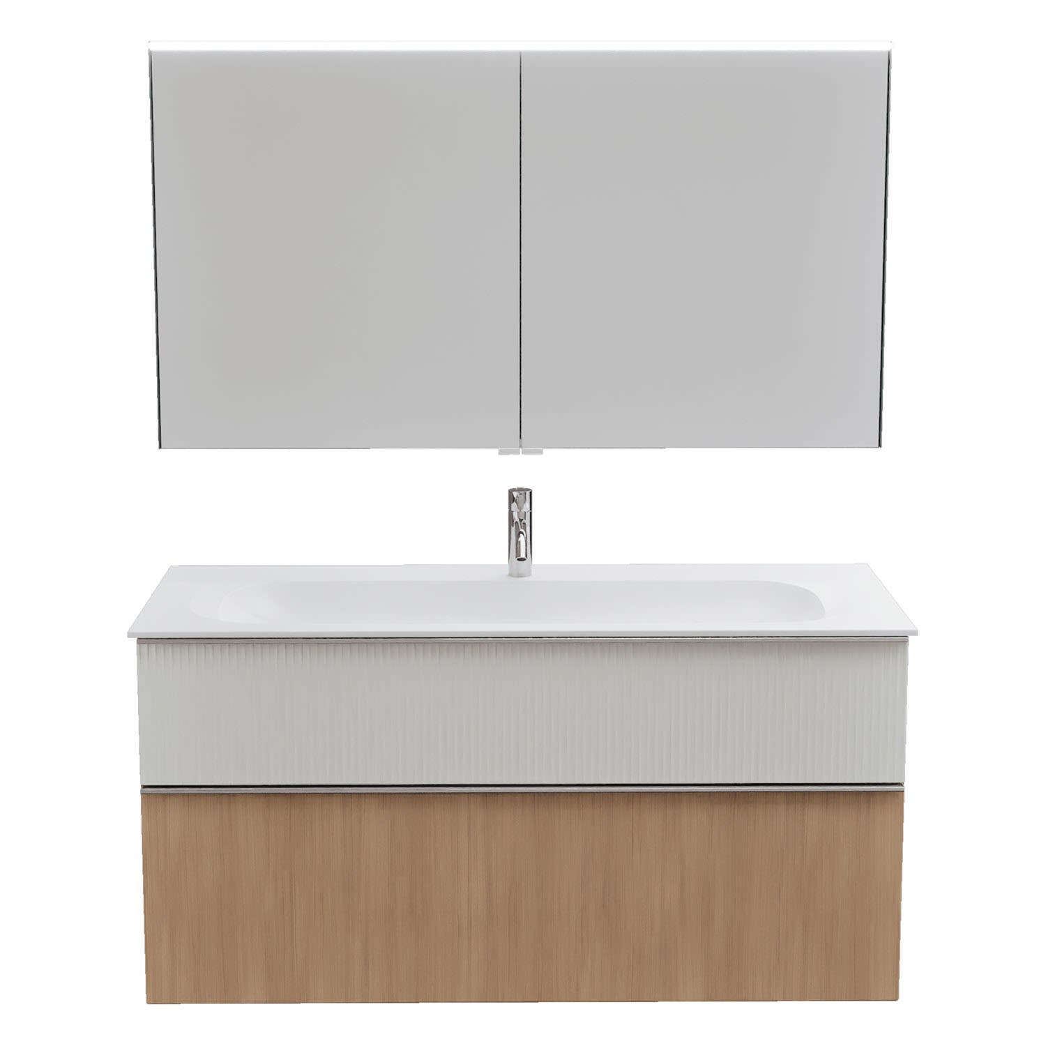 burgbad Fiumo 2.0 Badmöbelset 122 cm mit Waschtisch mit Unterschrank mit Griff G0146 und Spiegelschrank
