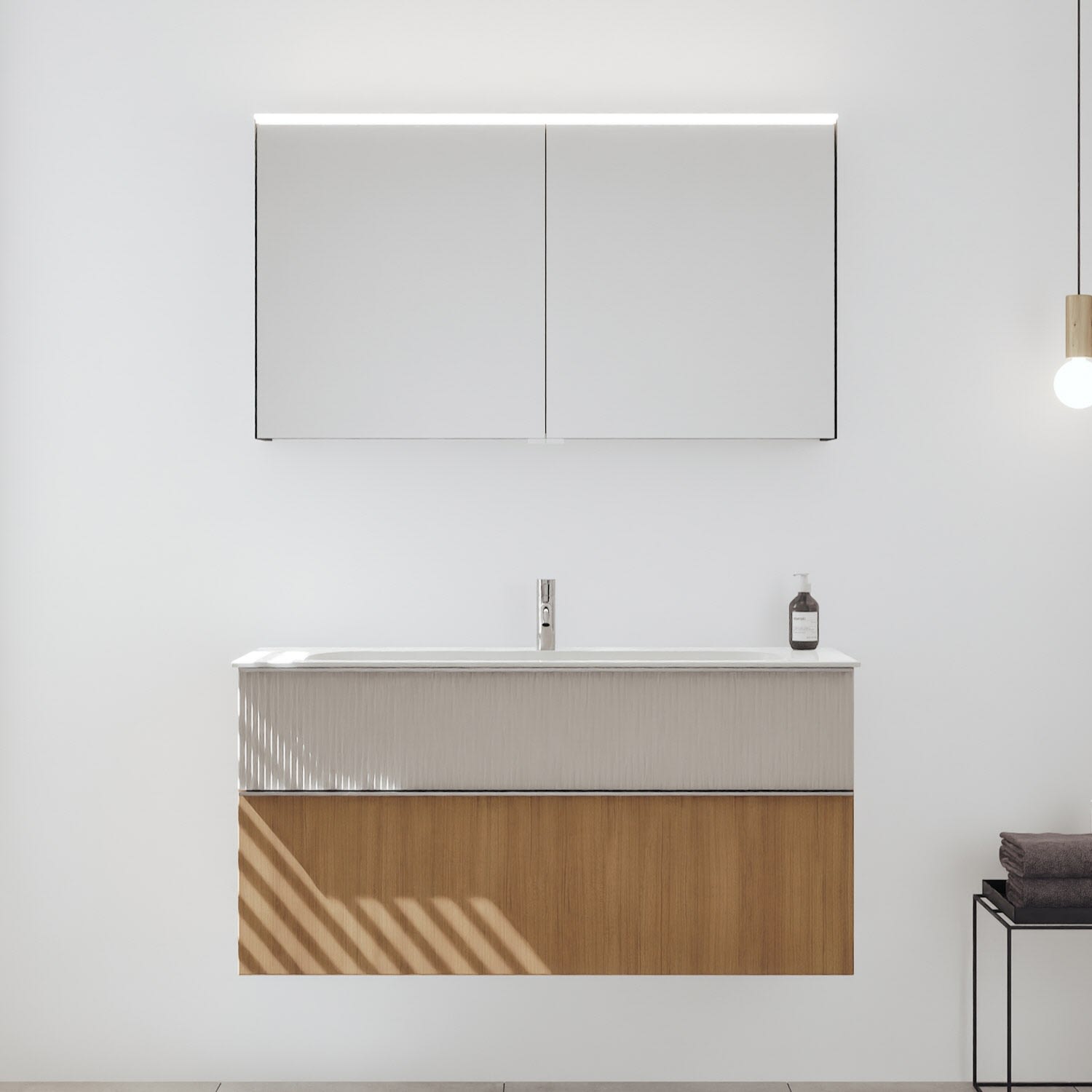 - Spiegelschrank, Waschtischunterschrank, Waschtisch, burgbad cleanFlow, Befestigung außer Stockschrauben