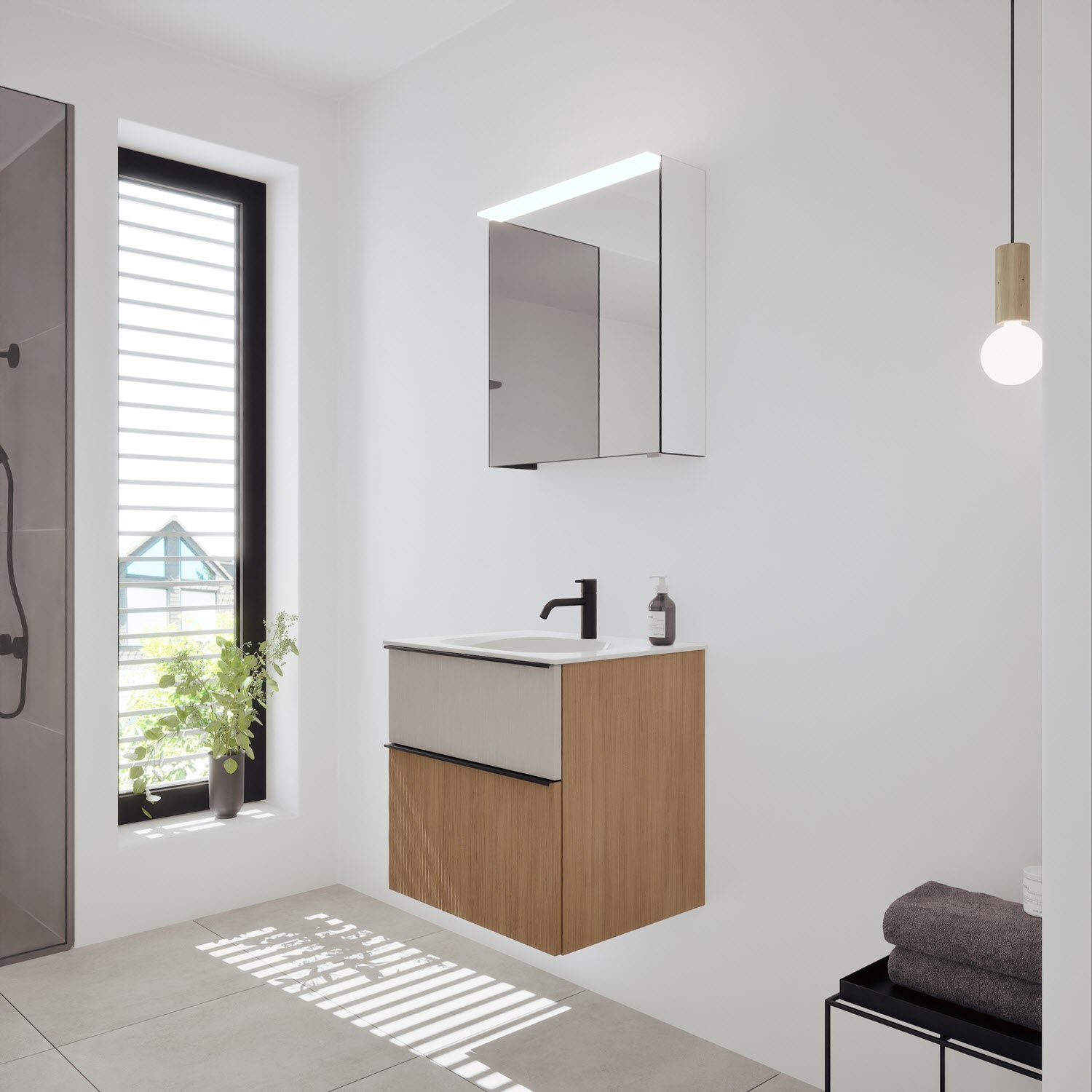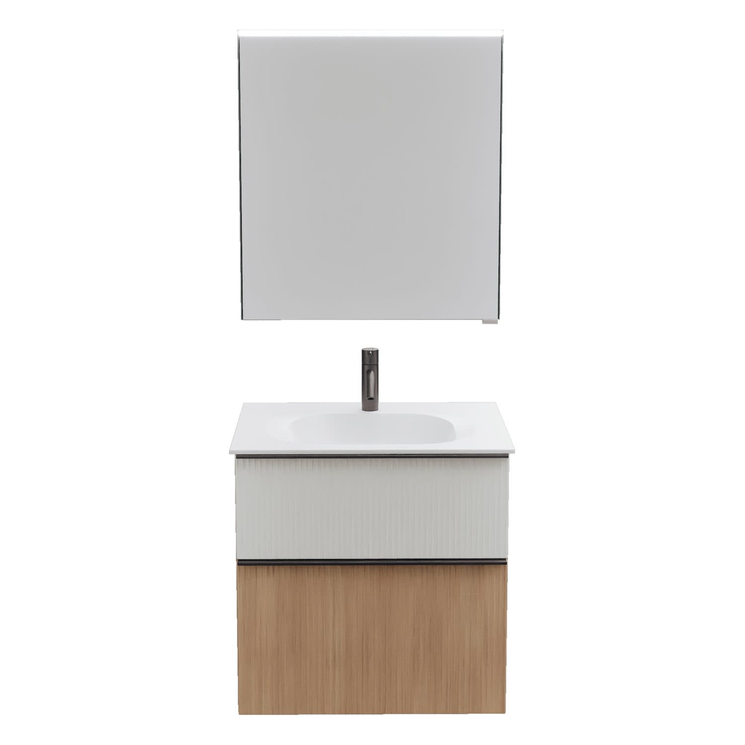 burgbad Fiumo 2.0 Badmöbelset 62 cm mit Waschtisch mit Unterschrank mit Griff G0200 und Spiegelschrank