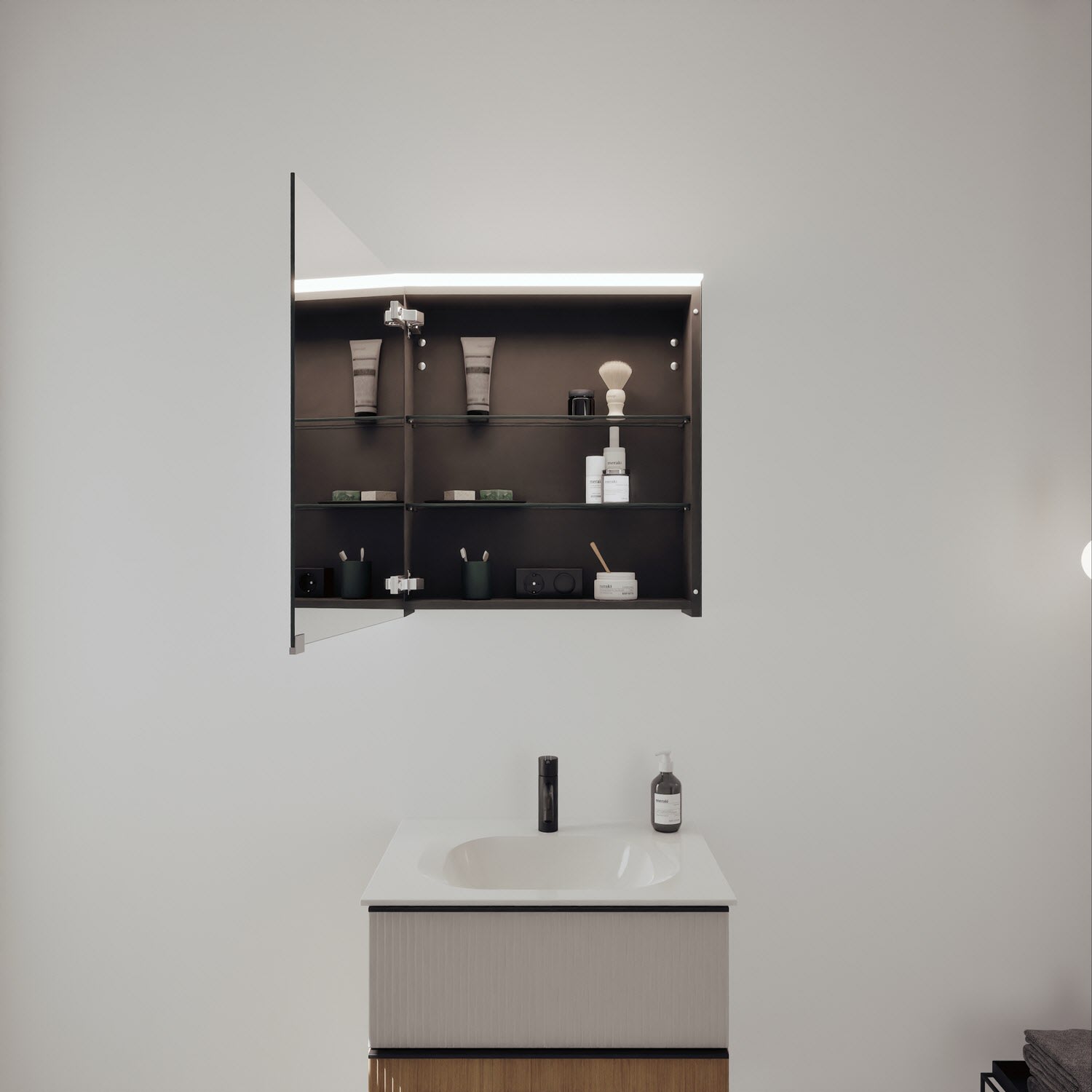 - Spiegelschrank, Waschtischunterschrank, Waschtisch,burgbad cleanFlow, Befestigung außer Stockschrauben