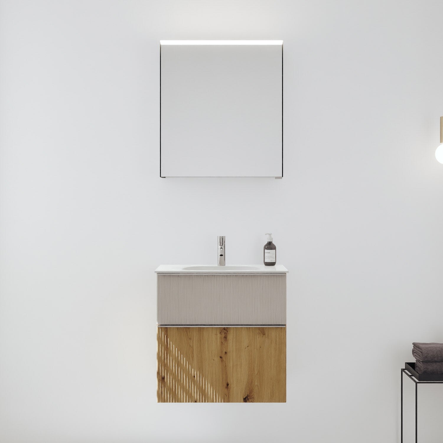 burgbad Fiumo 2.0 Badmöbelset 62 cm mit Waschtisch mit Unterschrank mit Griff G0146 und Spiegelschrank