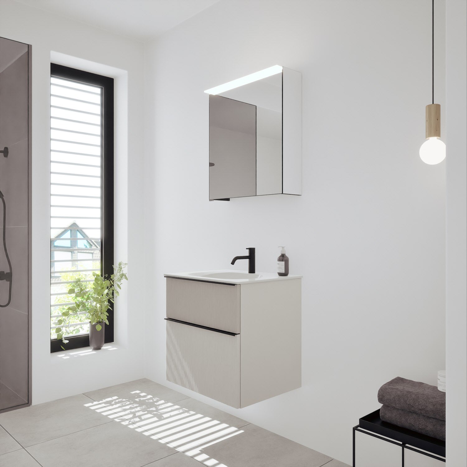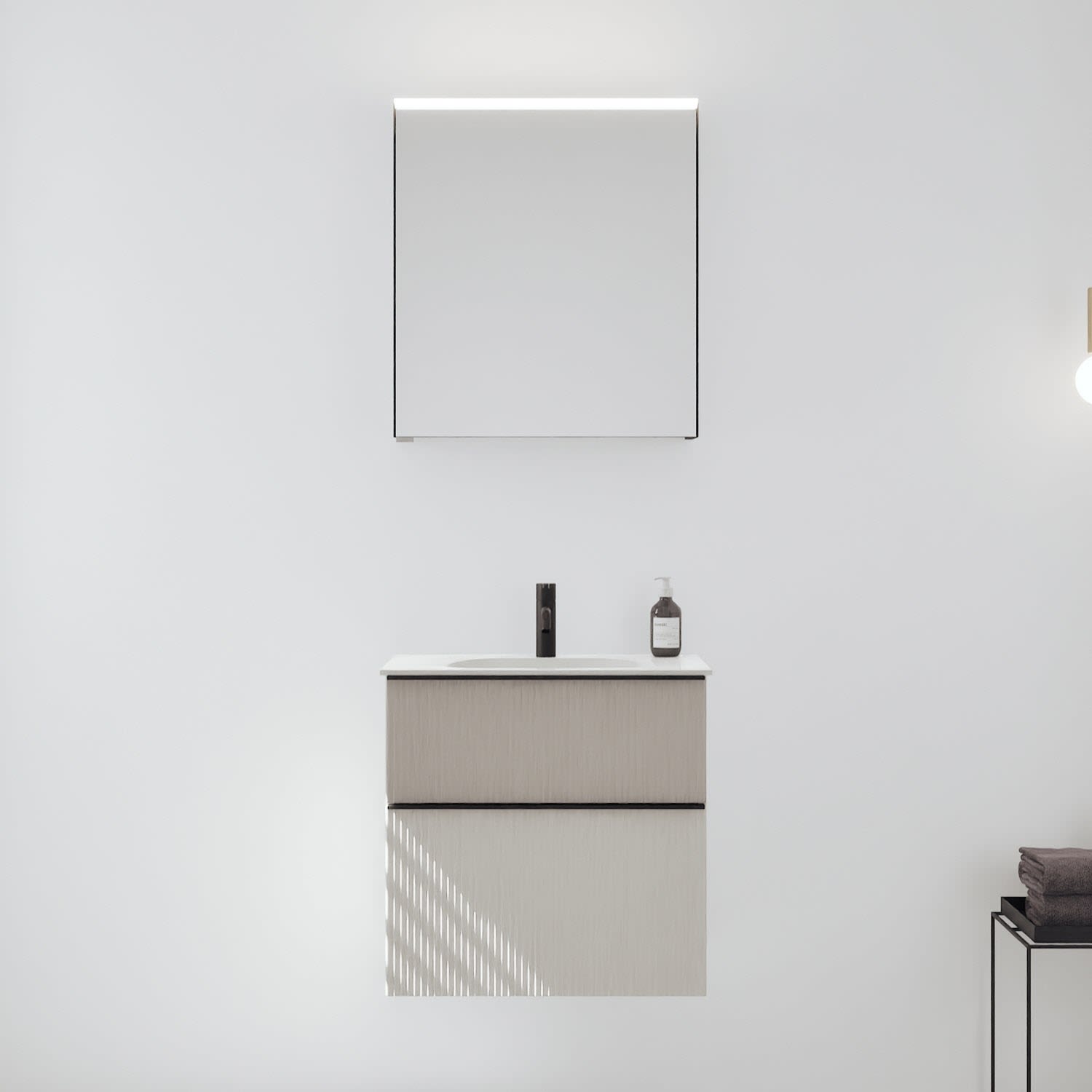 burgbad Fiumo 2.0 Badmöbelset 62 cm mit Waschtisch mit Unterschrank mit Griff G0200 und Spiegelschrank