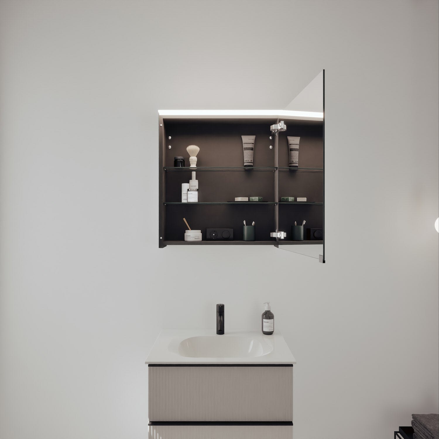 - Spiegelschrank, Waschtischunterschrank, Waschtisch,burgbad cleanFlow, Befestigung außer Stockschrauben