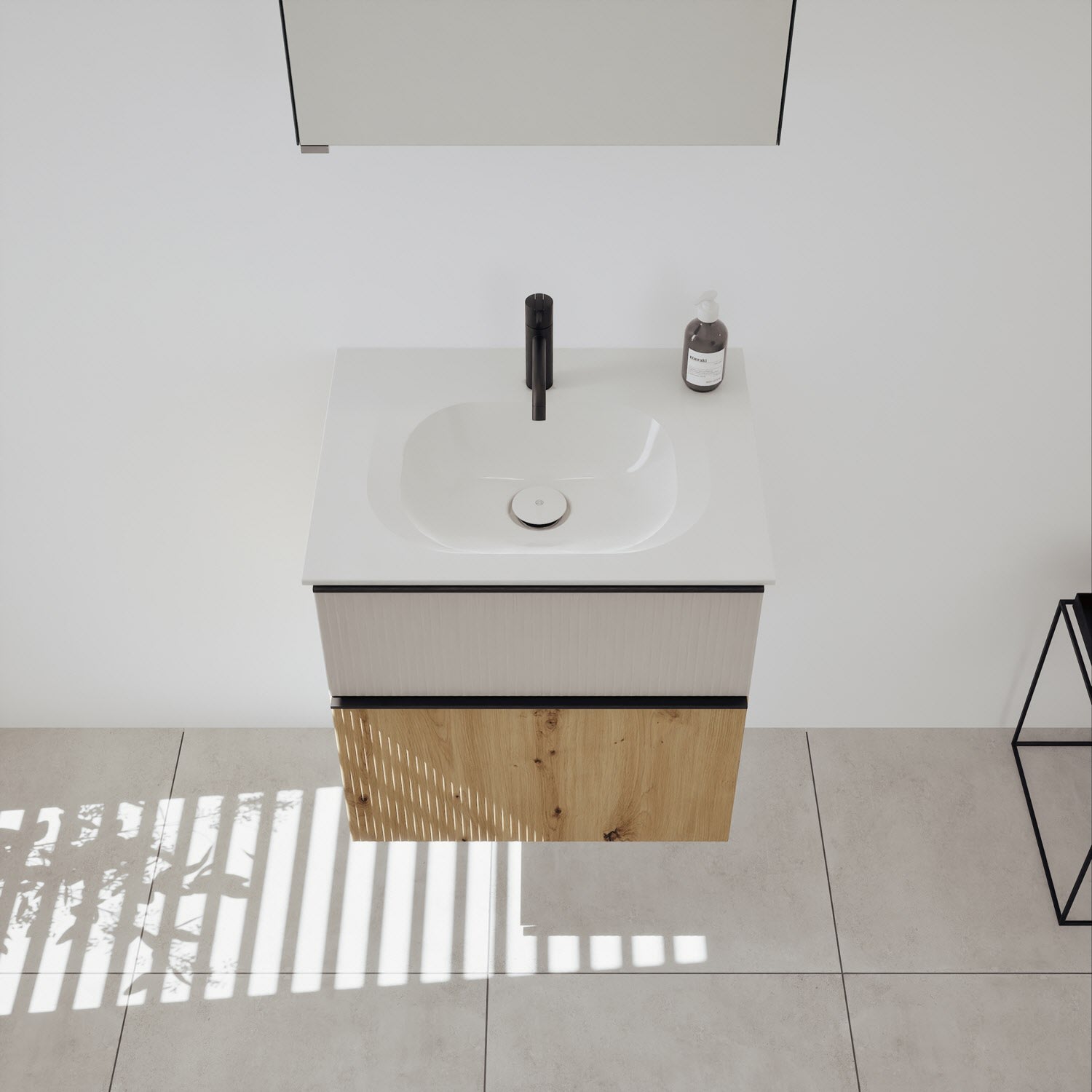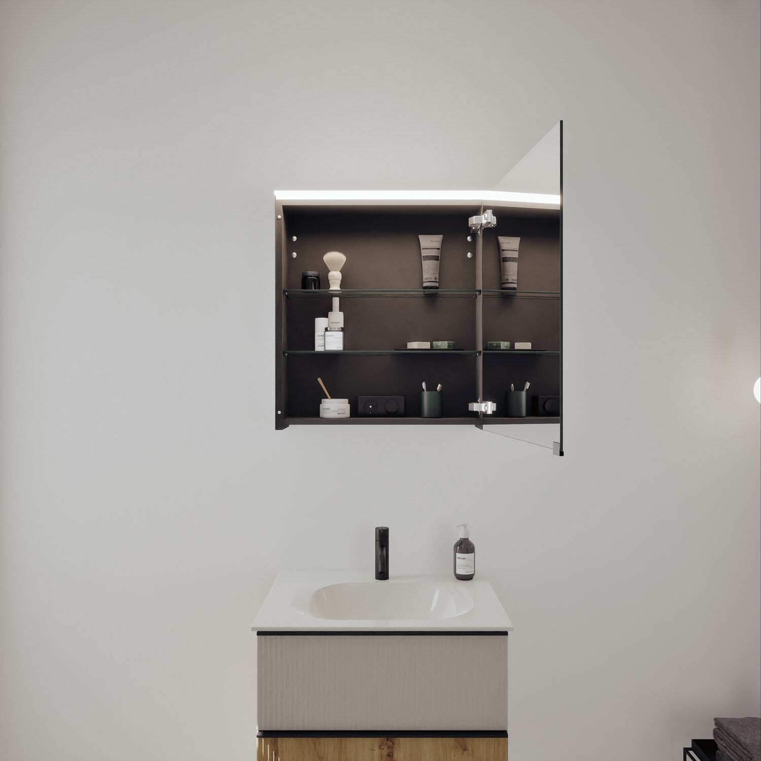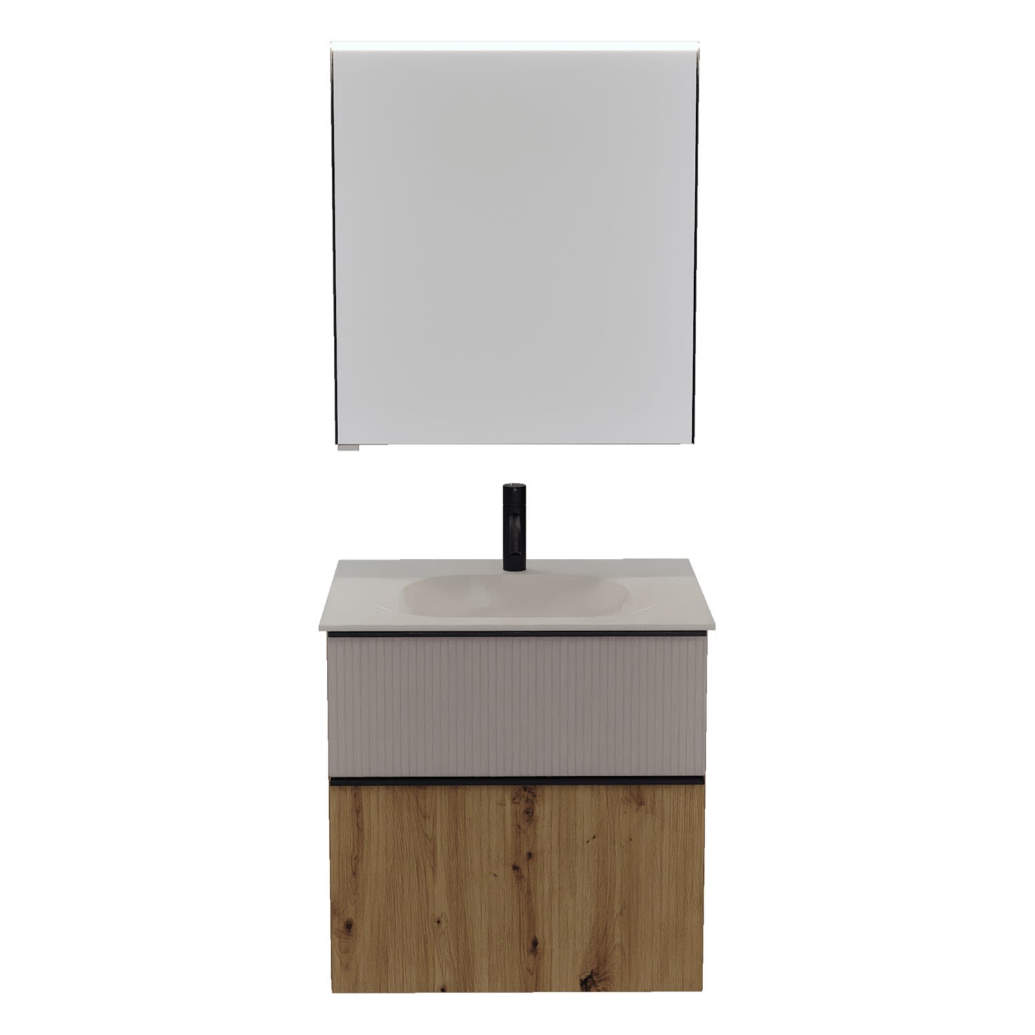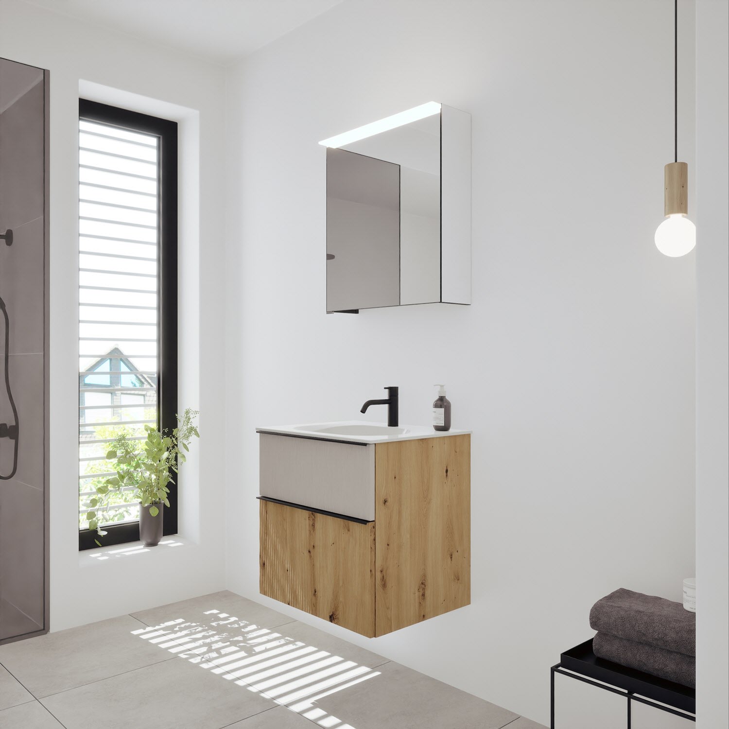 burgbad Fiumo 2.0 Badmöbelset 62 cm mit Waschtisch mit Unterschrank mit Griff G0200 und Spiegelschrank