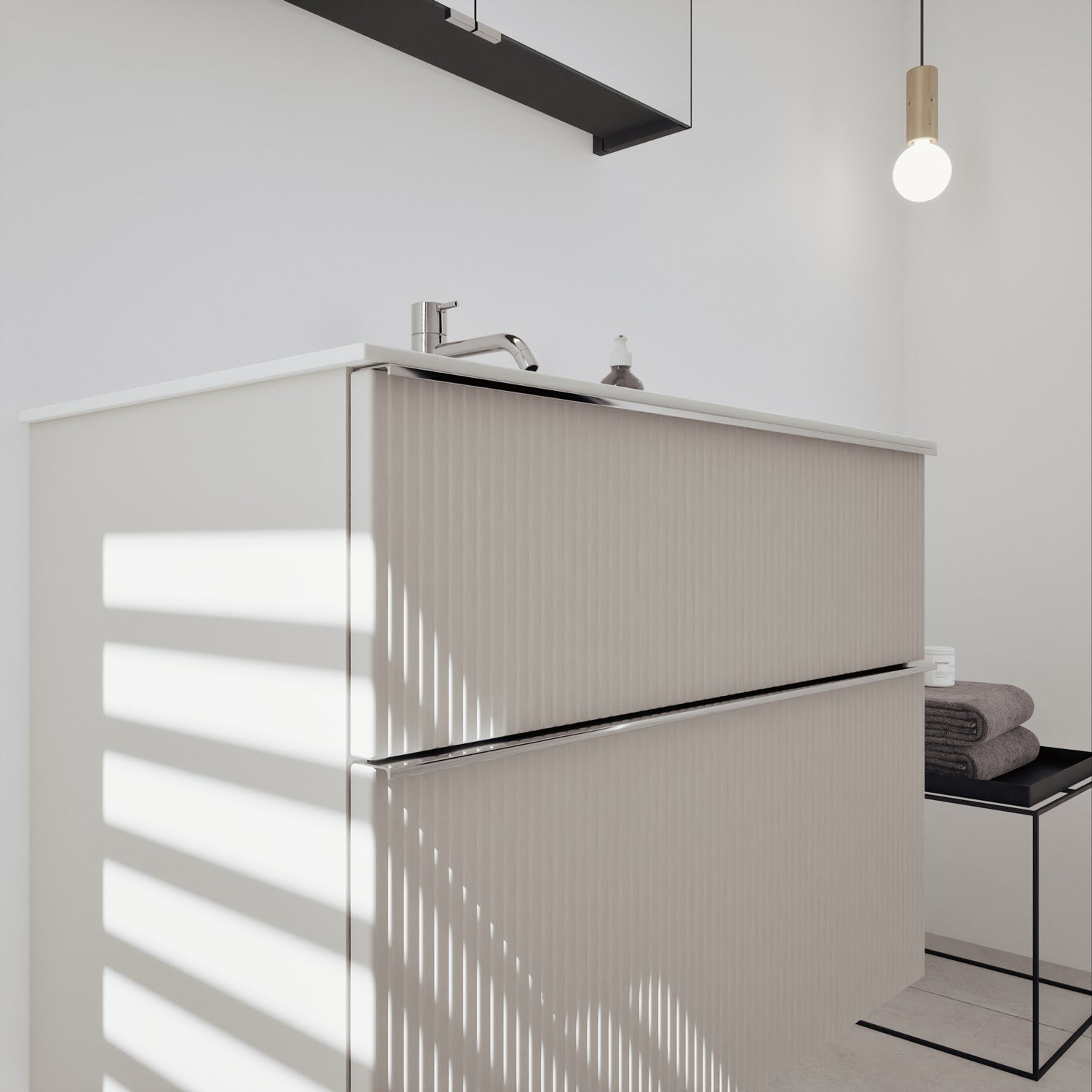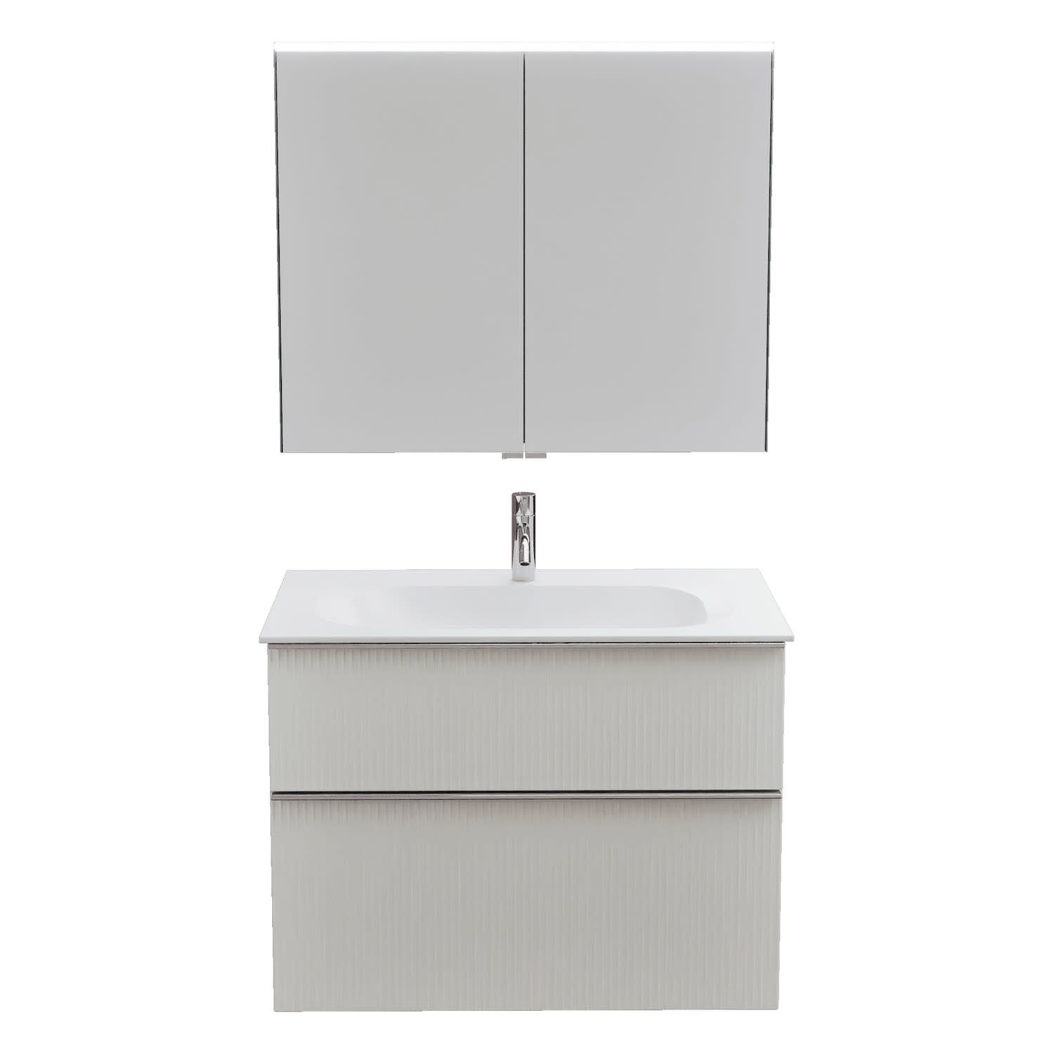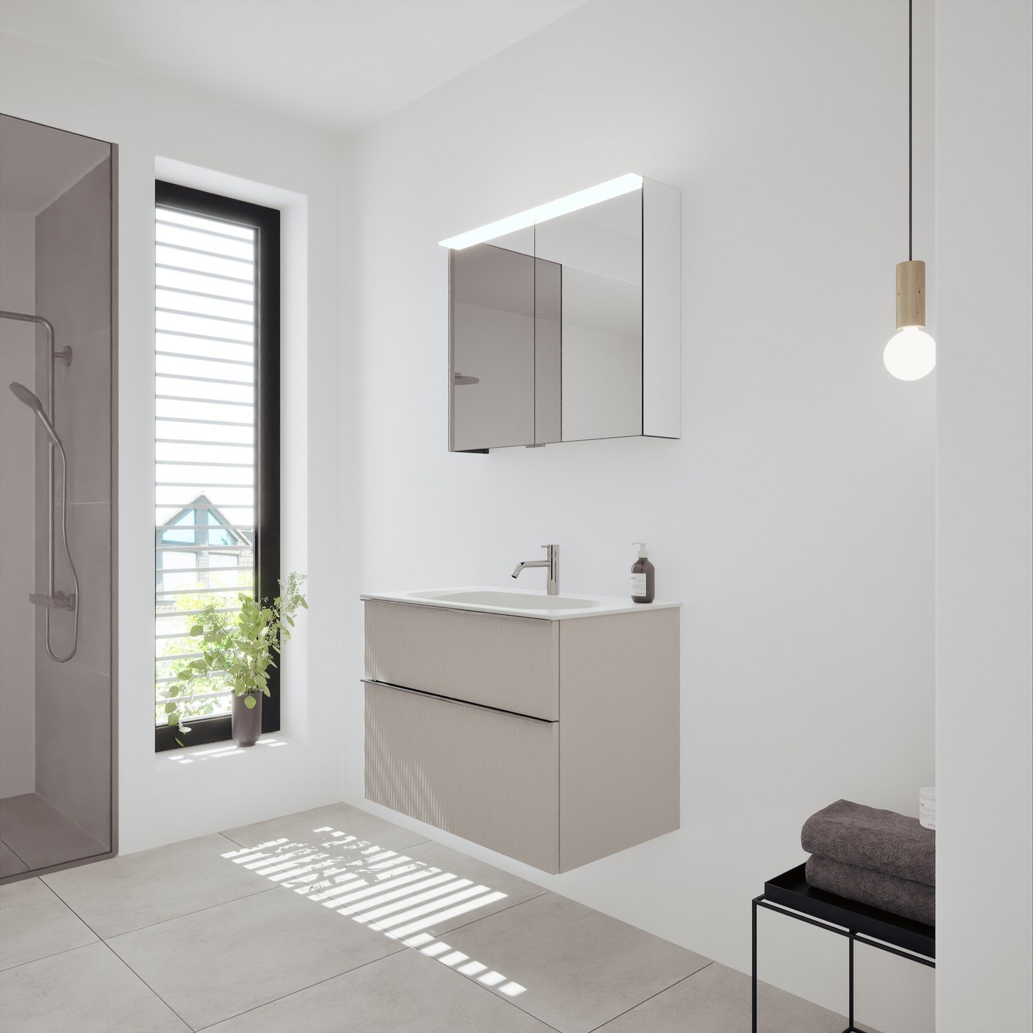burgbad Fiumo 2.0 Badmöbelset 82 cm mit Waschtisch mit Unterschrank mit Griff G0146 und Spiegelschrank