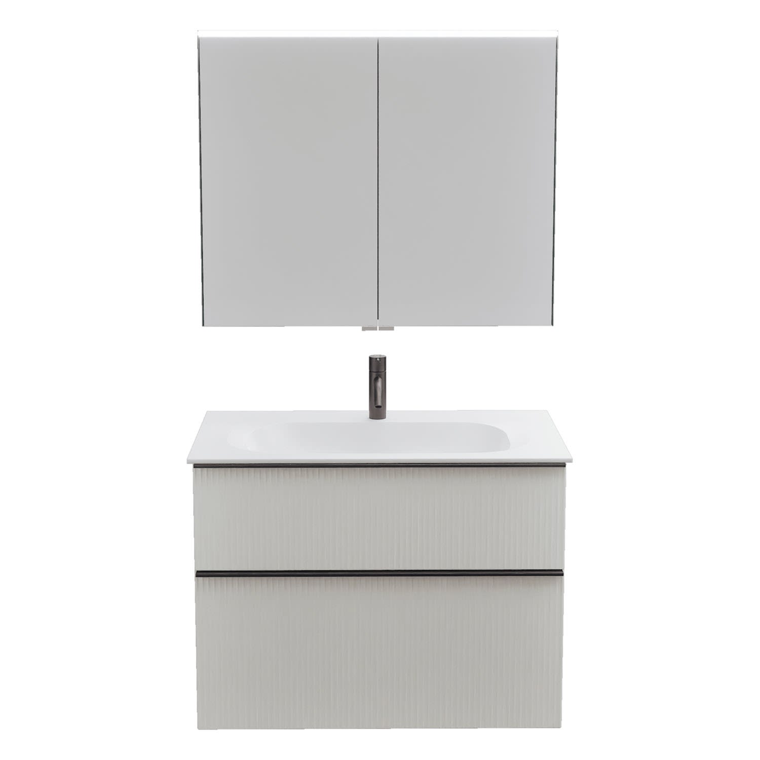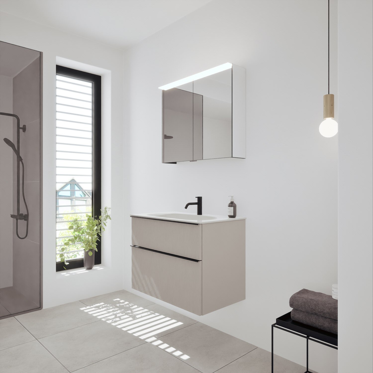 burgbad Fiumo 2.0 Badmöbelset 82 cm mit Waschtisch mit Unterschrank mit Griff G0200 und Spiegelschrank