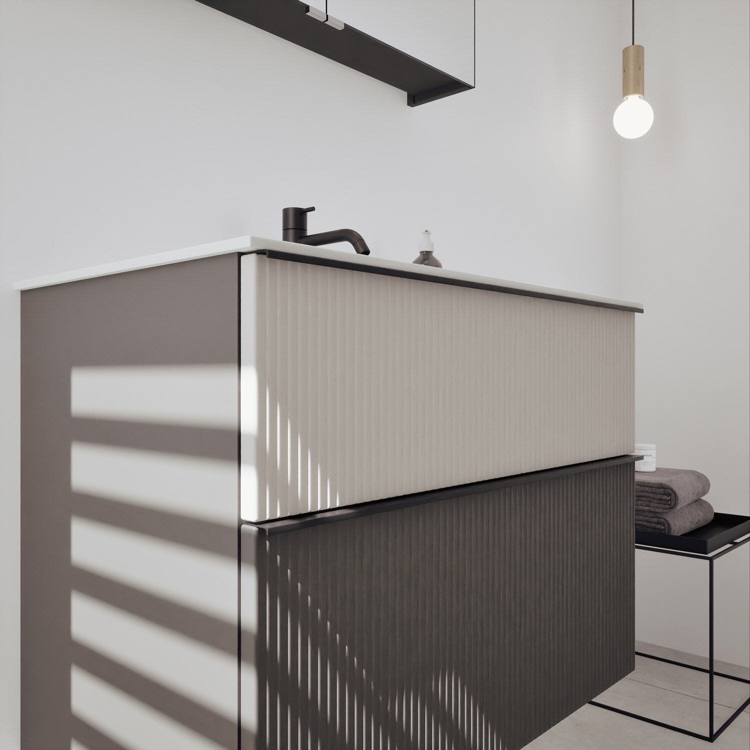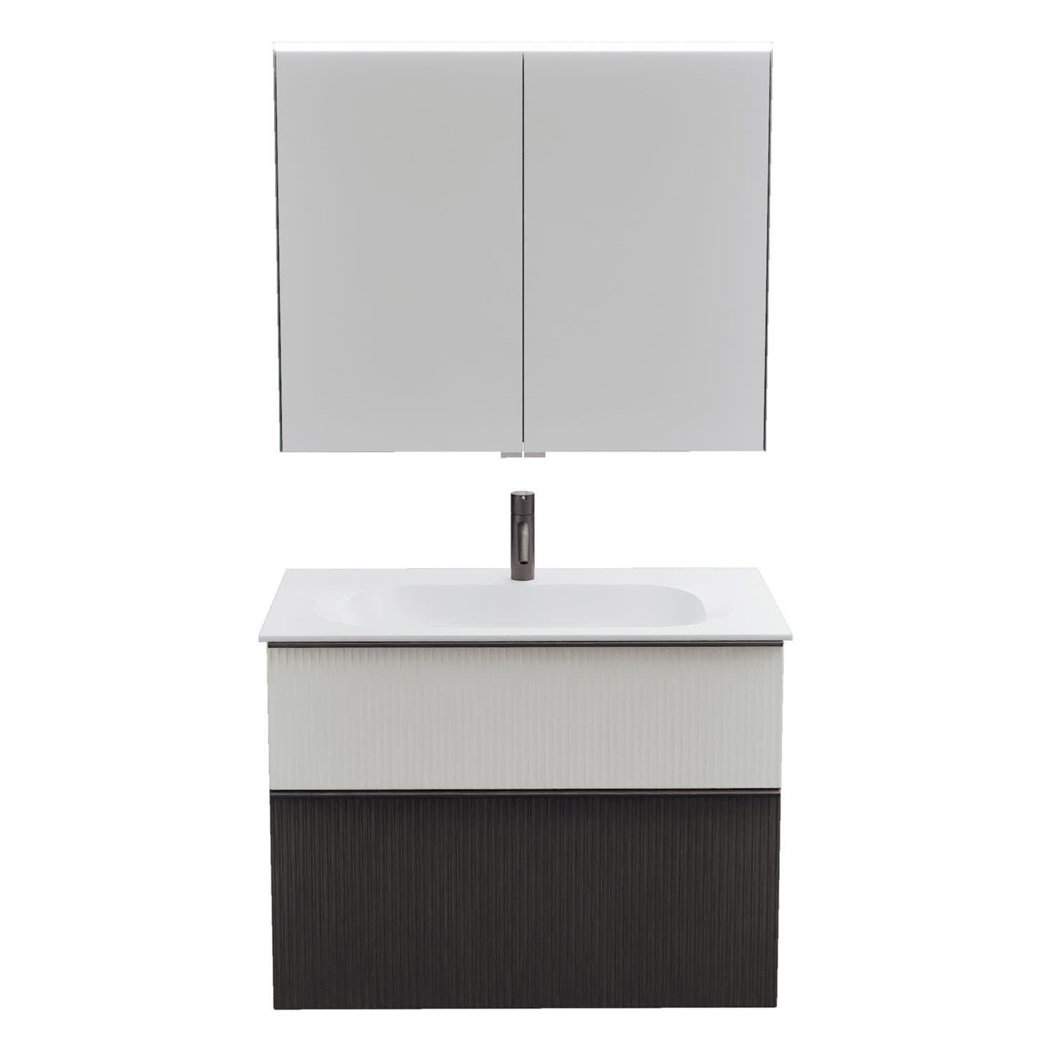 burgbad Fiumo 2.0 Badmöbelset 82 cm mit Waschtisch mit Unterschrank mit Griff G0200 und Spiegelschrank