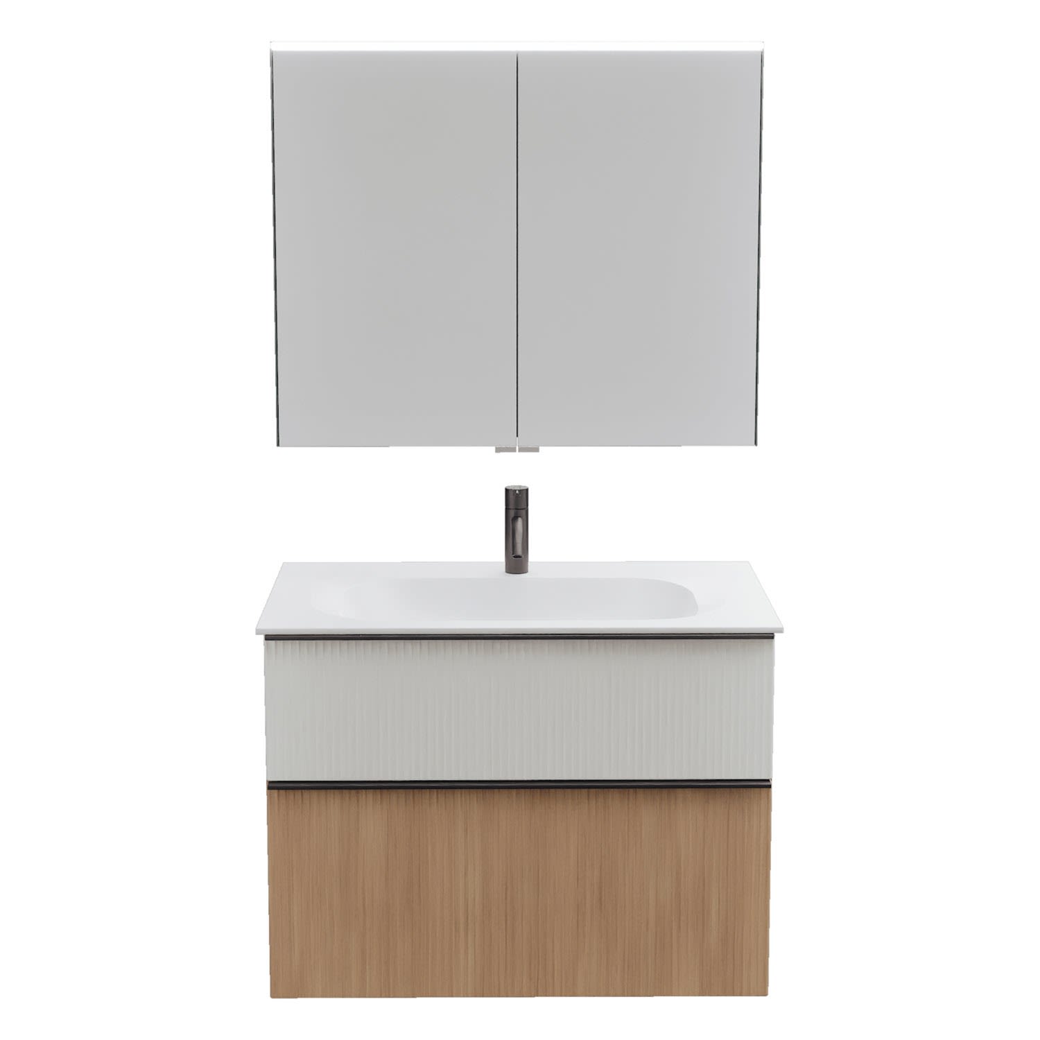 burgbad Fiumo 2.0 Badmöbelset 82 cm mit Waschtisch mit Unterschrank mit Griff G0200 und Spiegelschrank