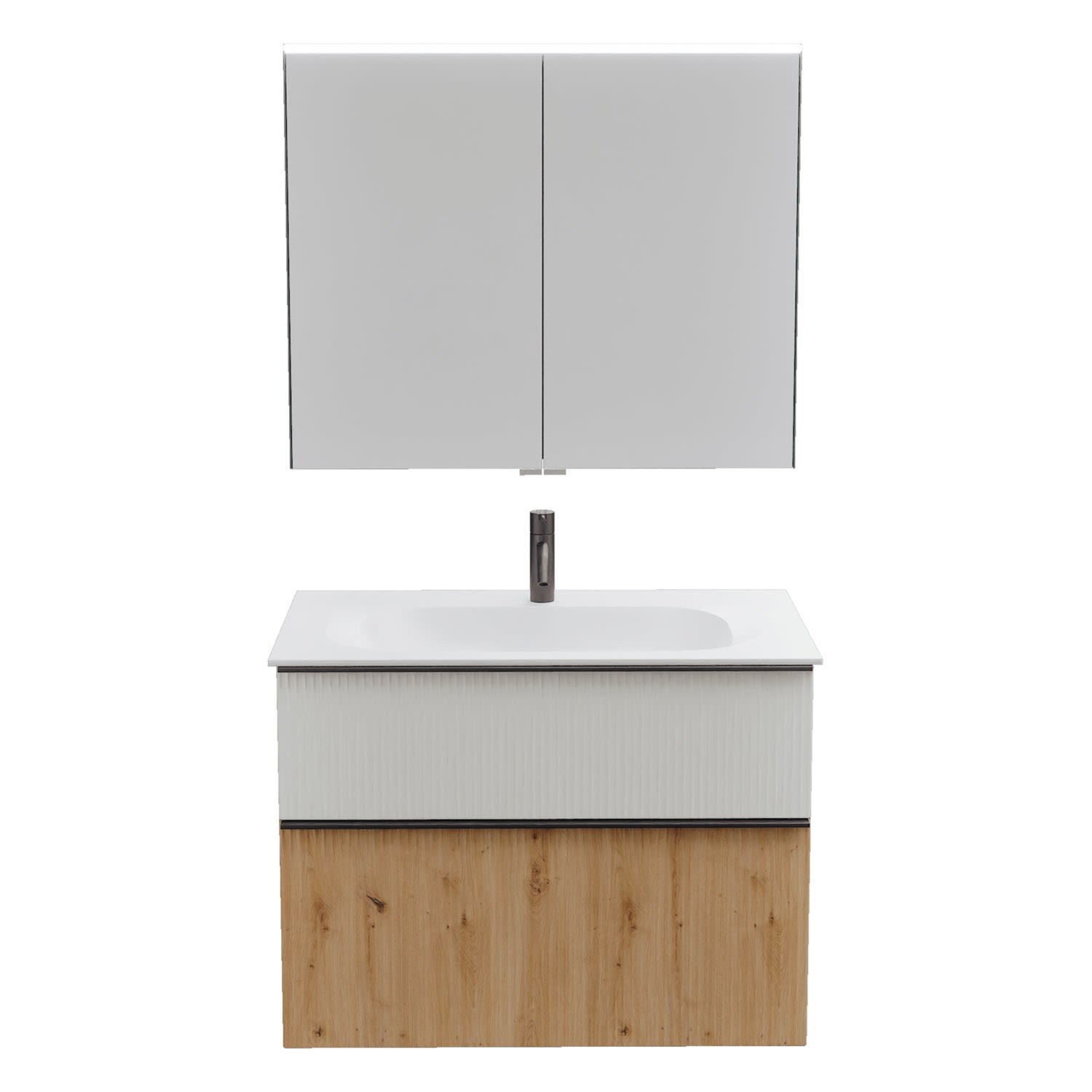 burgbad Fiumo 2.0 Badmöbelset 82 cm mit Waschtisch mit Unterschrank mit Griff G0200 und Spiegelschrank