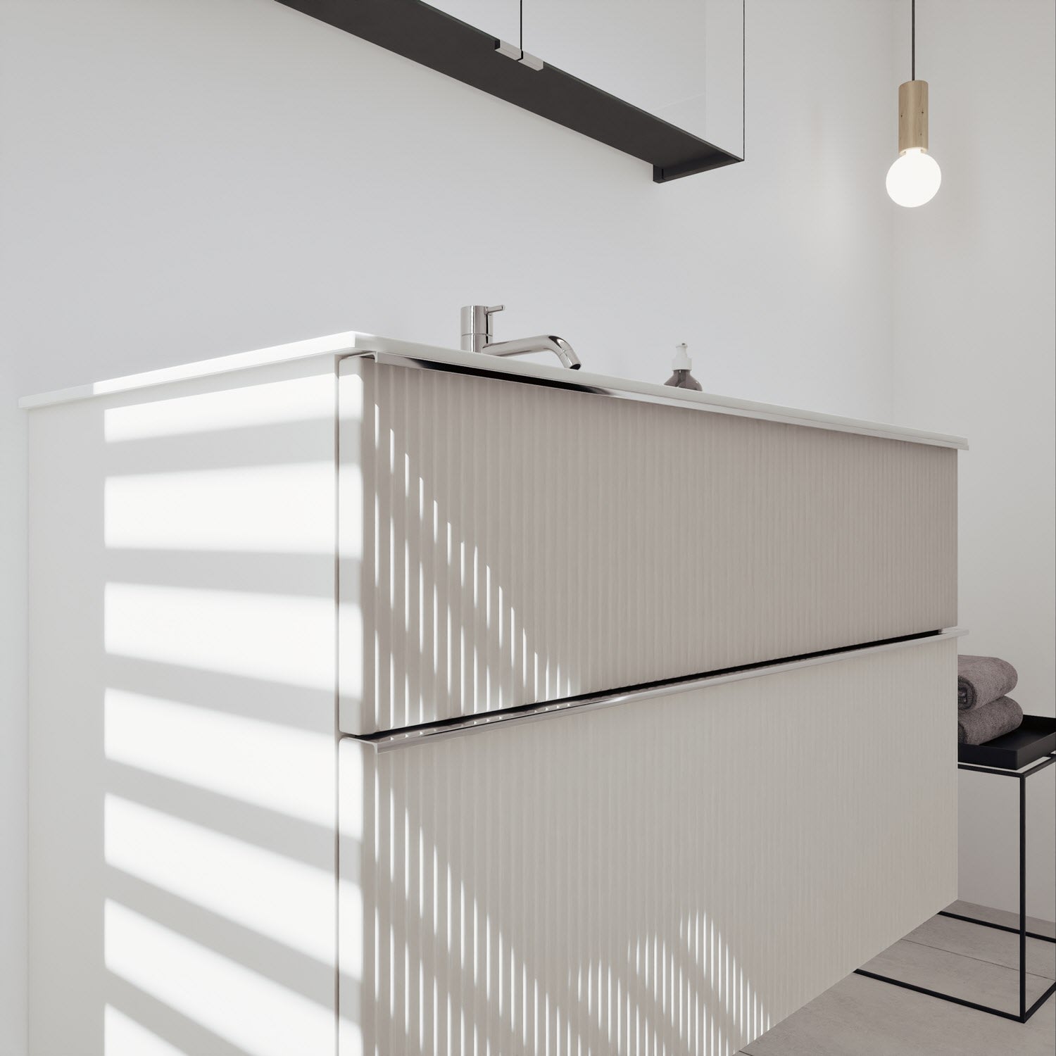 - Spiegelschrank, Waschtischunterschrank, Waschtisch,burgbad cleanFlow, Befestigung außer Stockschrauben