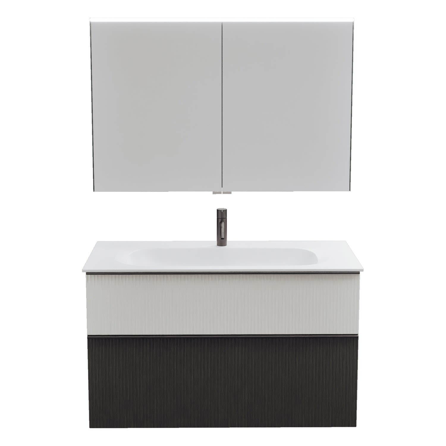 burgbad Fiumo 2.0 Badmöbelset 102 cm mit Waschtisch mit Unterschrank mit Griff G0200 und Spiegelschrank