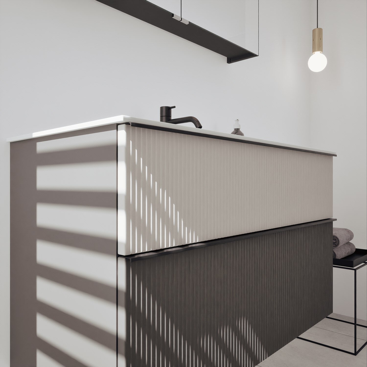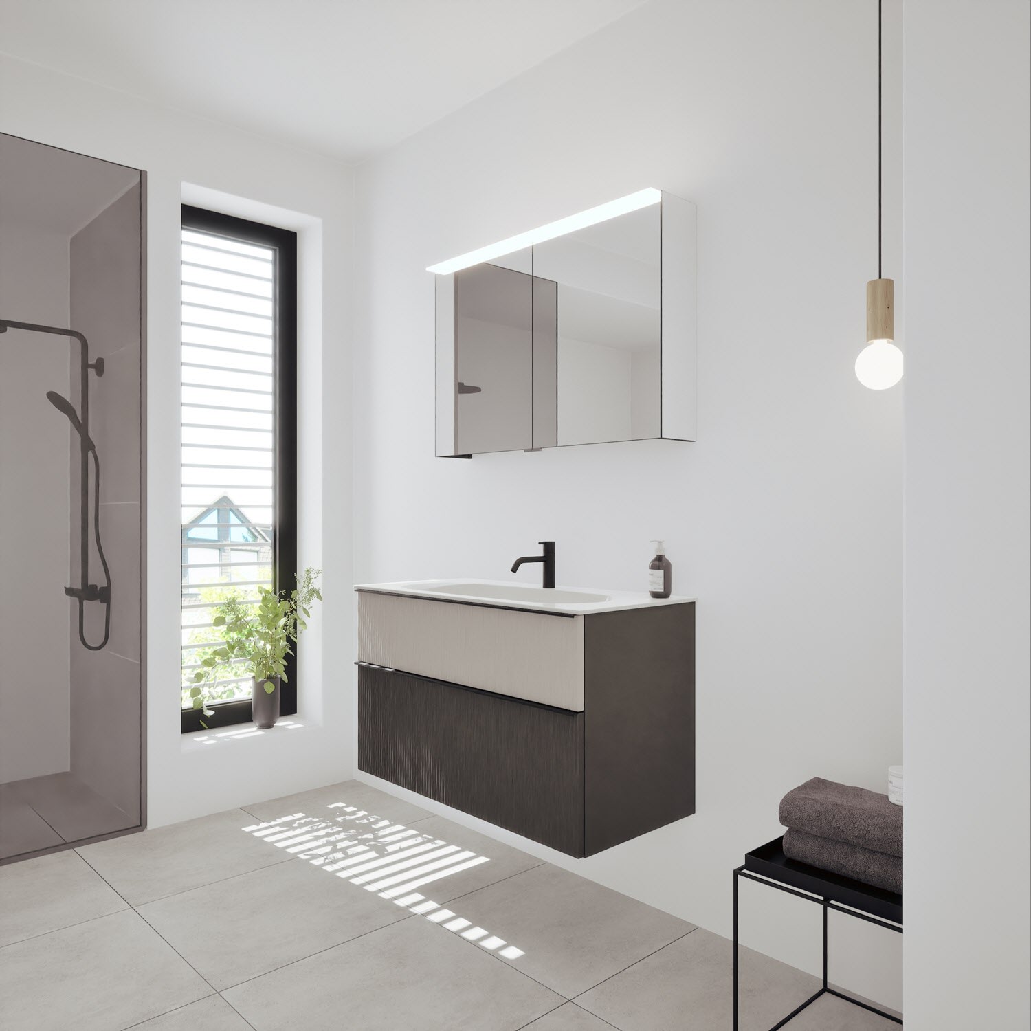 - Spiegelschrank, Waschtischunterschrank, Waschtisch,burgbad cleanFlow, Befestigung außer Stockschrauben