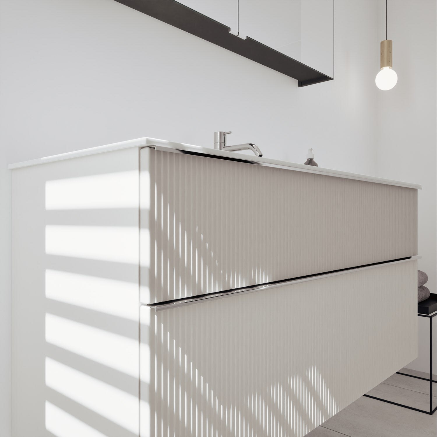 burgbad Fiumo 2.0 Badmöbelset 122 cm mit Waschtisch mit Unterschrank mit Griff G0146 und Spiegelschrank