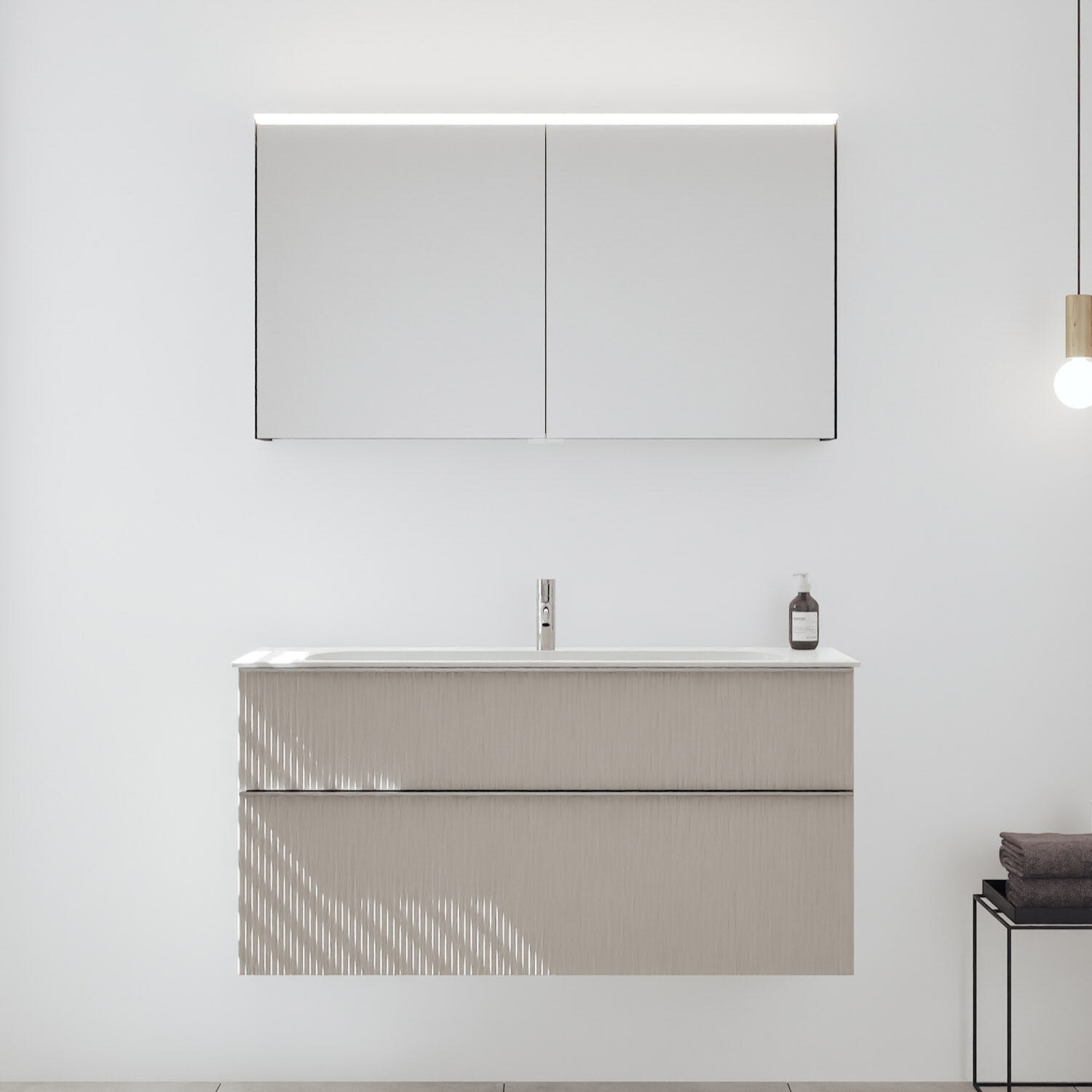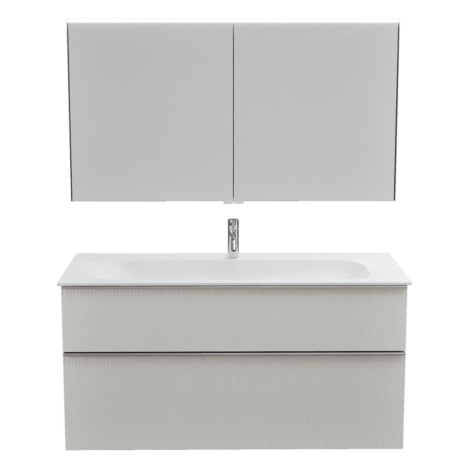 burgbad Fiumo 2.0 Badmöbelset 122 cm mit Waschtisch mit Unterschrank mit Griff G0146 und Spiegelschrank