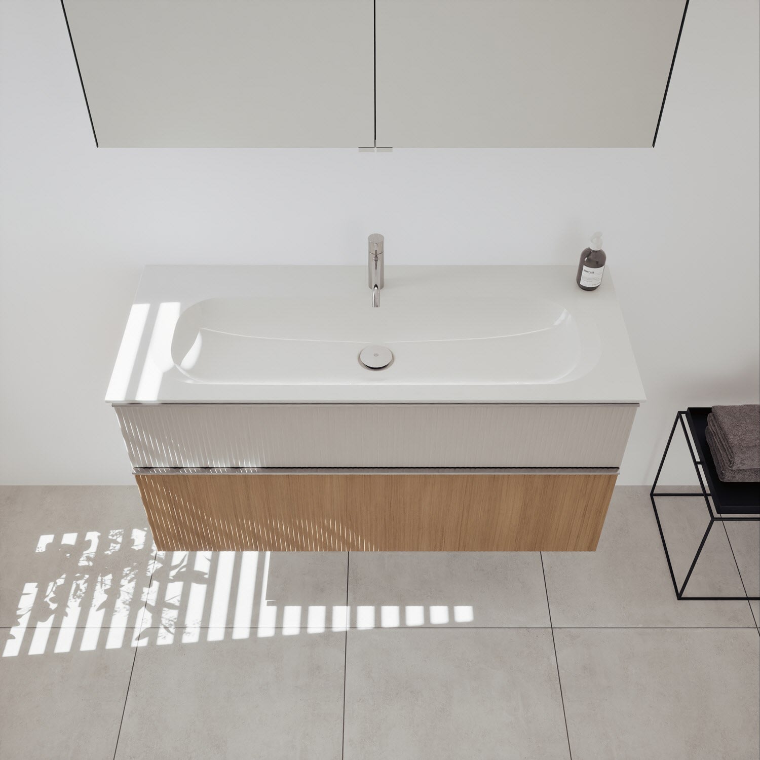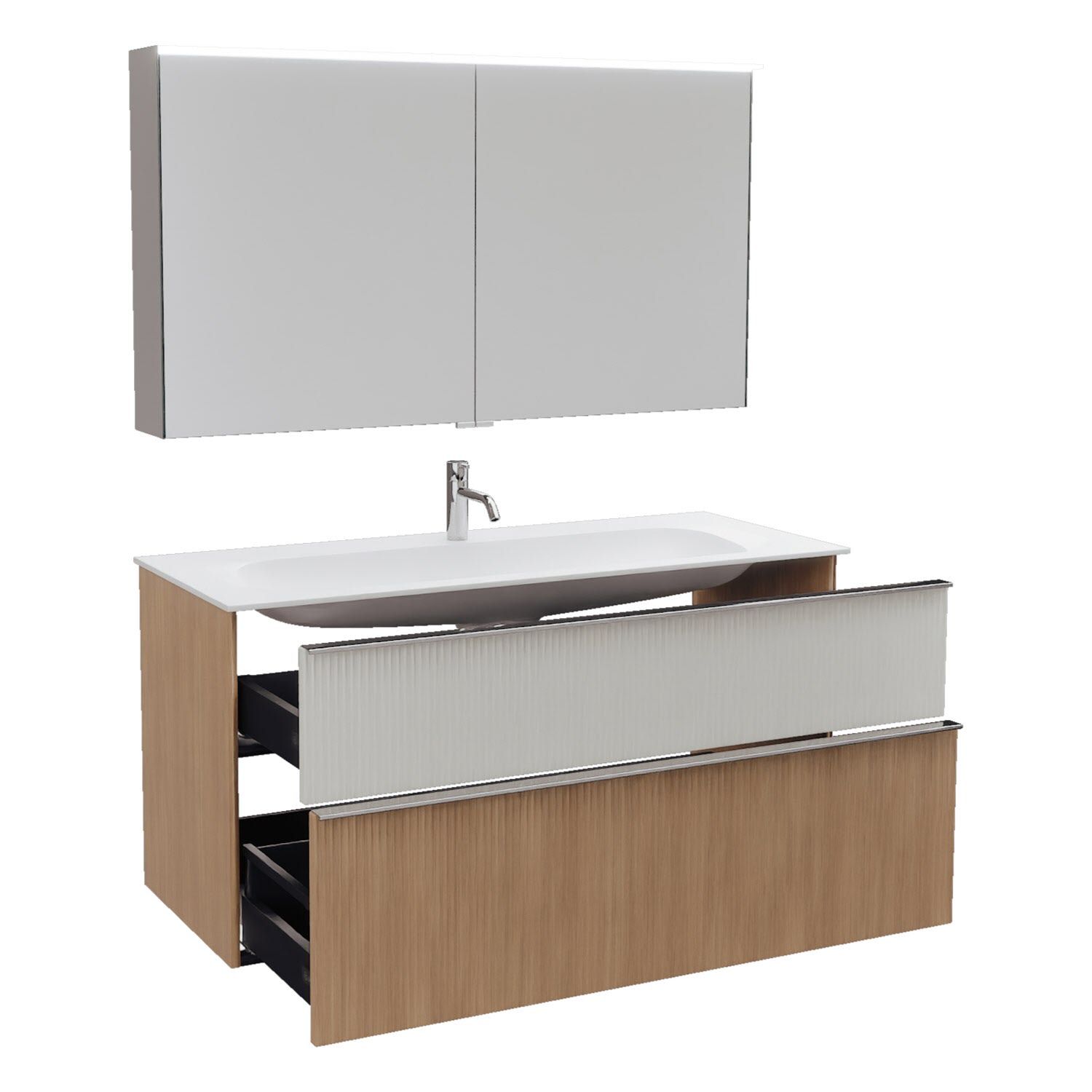 burgbad Fiumo 2.0 Badmöbelset 122 cm mit Waschtisch mit Unterschrank mit Griff G0146 und Spiegelschrank
