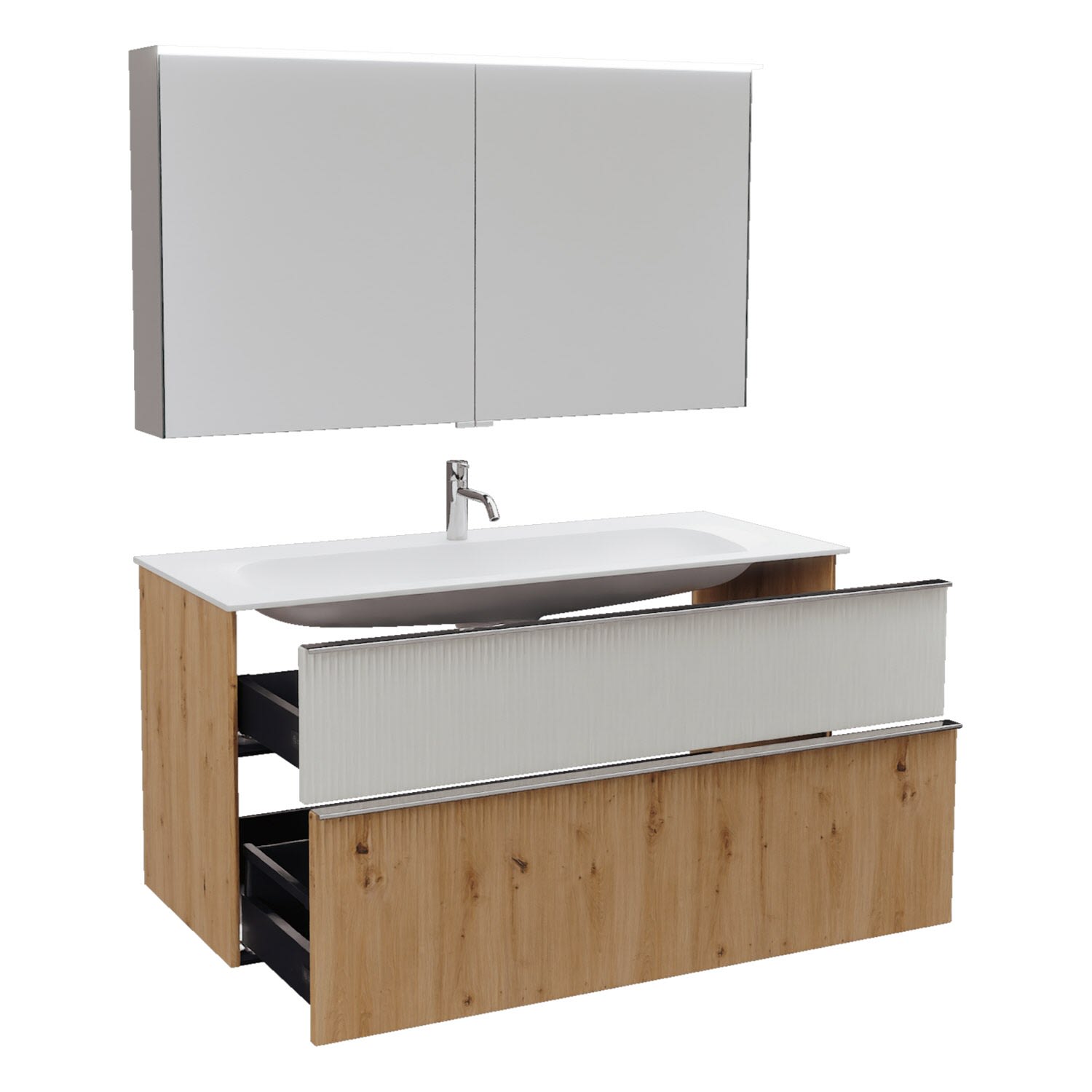 burgbad Fiumo 2.0 Badmöbelset 122 cm mit Waschtisch mit Unterschrank mit Griff G0146 und Spiegelschrank