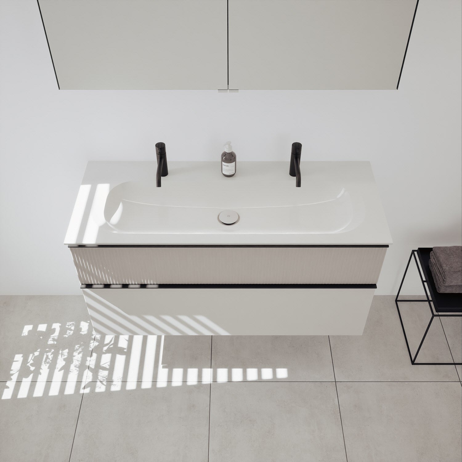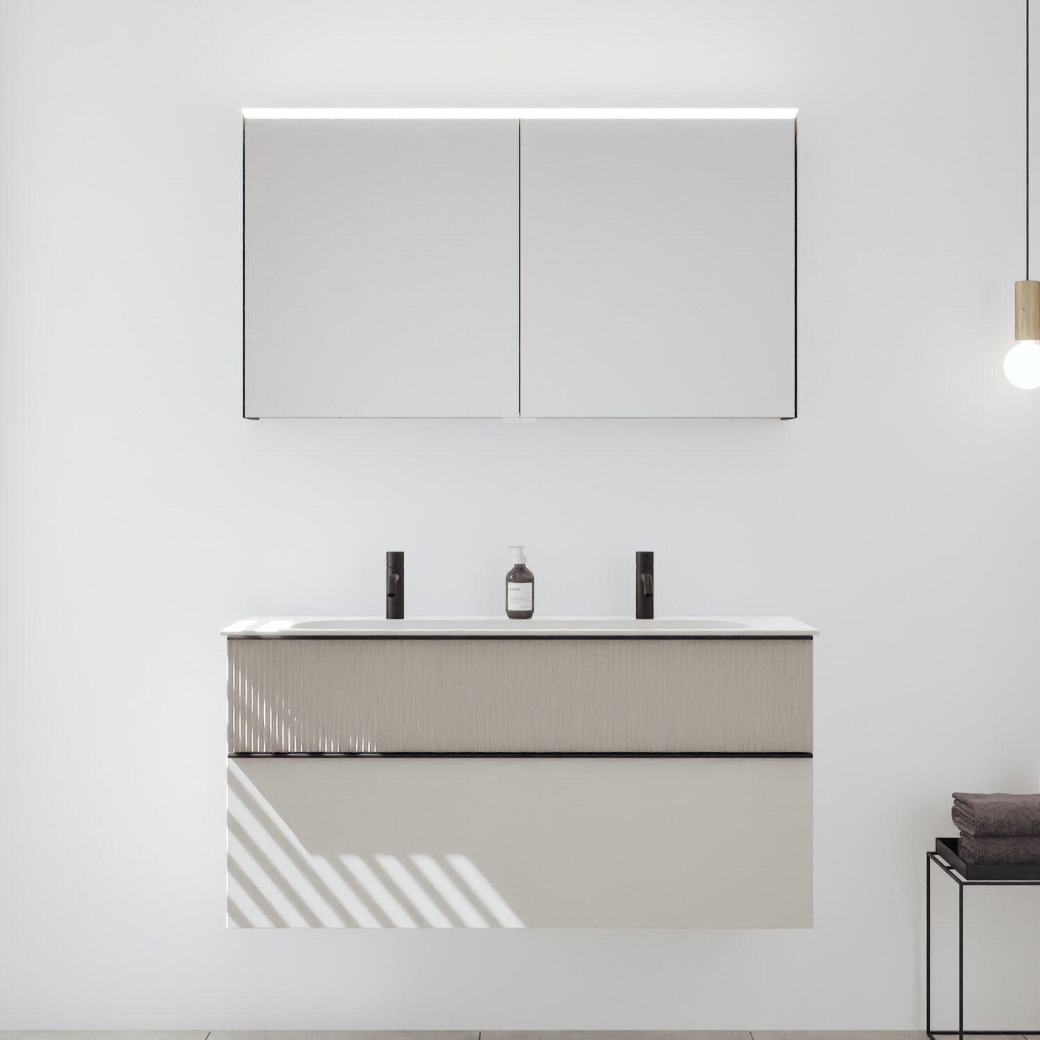 - Spiegelschrank, Waschtischunterschrank, Waschtisch,burgbad cleanFlow, Befestigung außer Stockschrauben