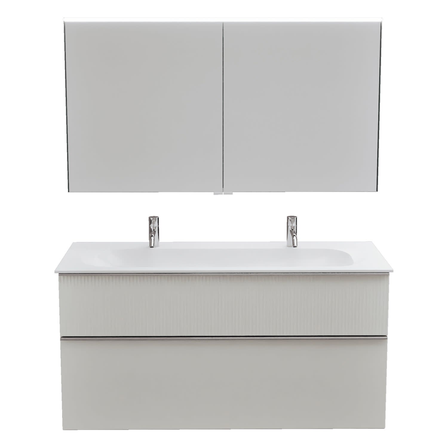 burgbad Fiumo 2.0 Badmöbelset 122 cm mit Waschtisch mit Unterschrank mit Griff G0146 und Spiegelschrank
