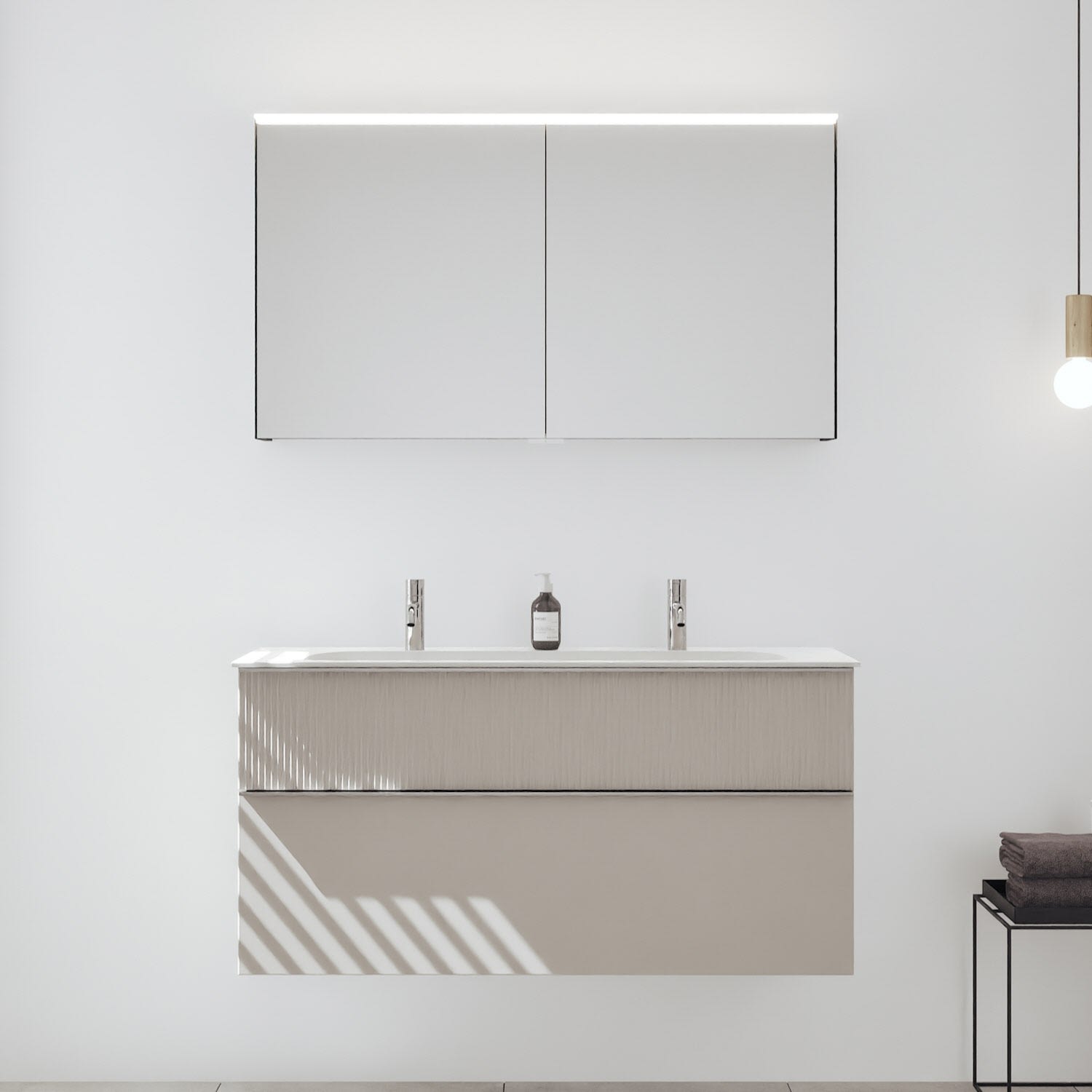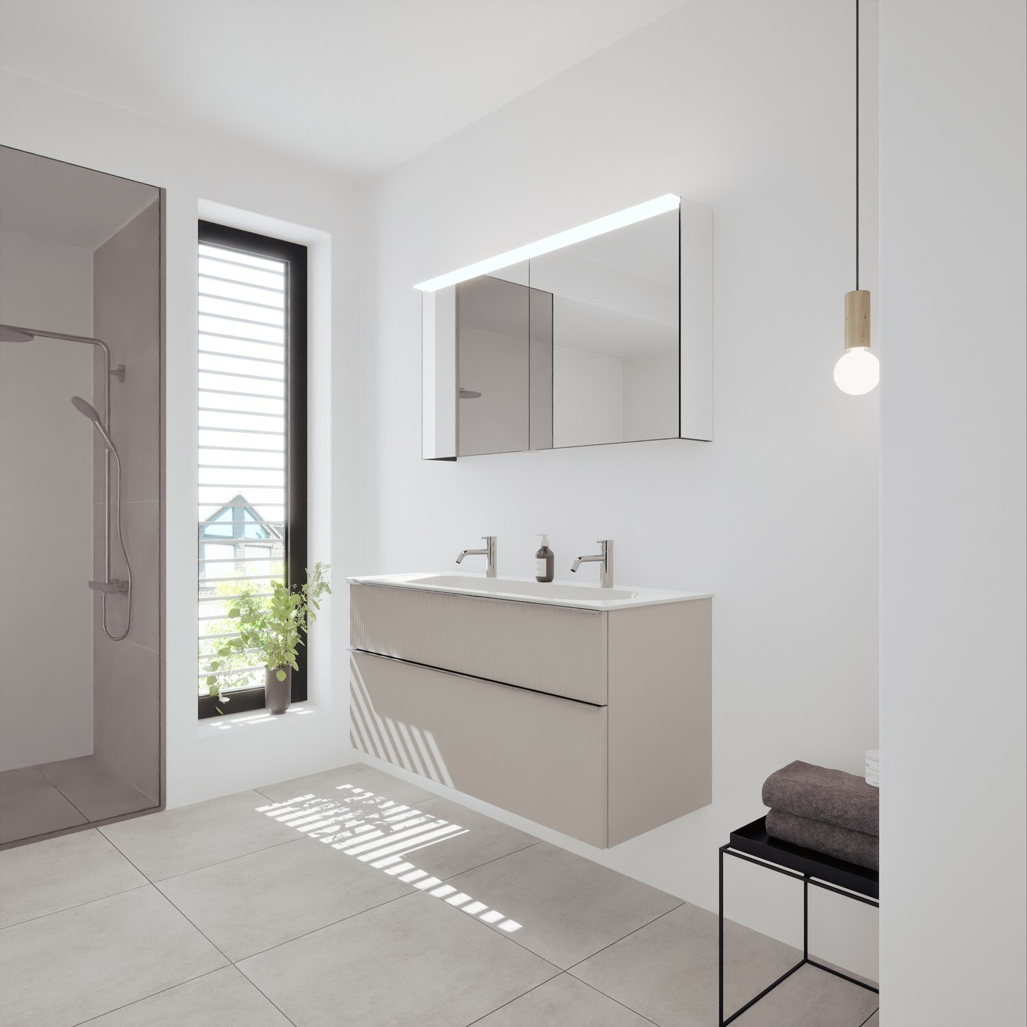 - Spiegelschrank, Waschtischunterschrank, Waschtisch,burgbad cleanFlow, Befestigung außer Stockschrauben