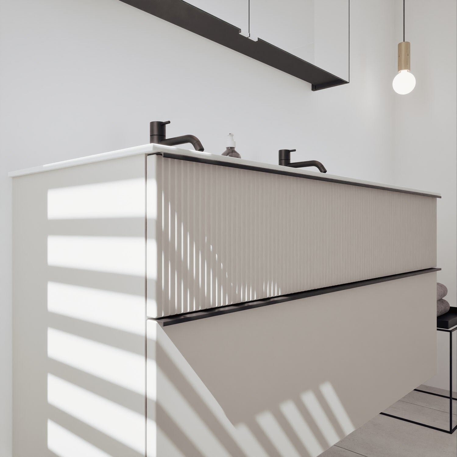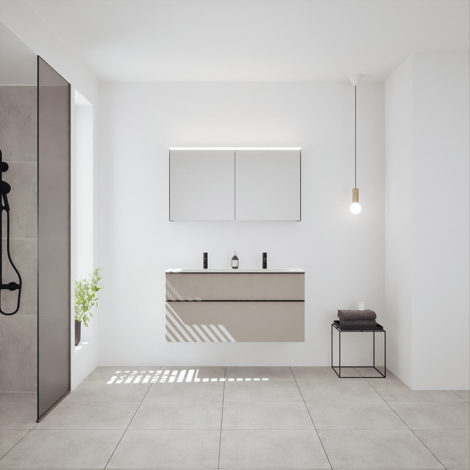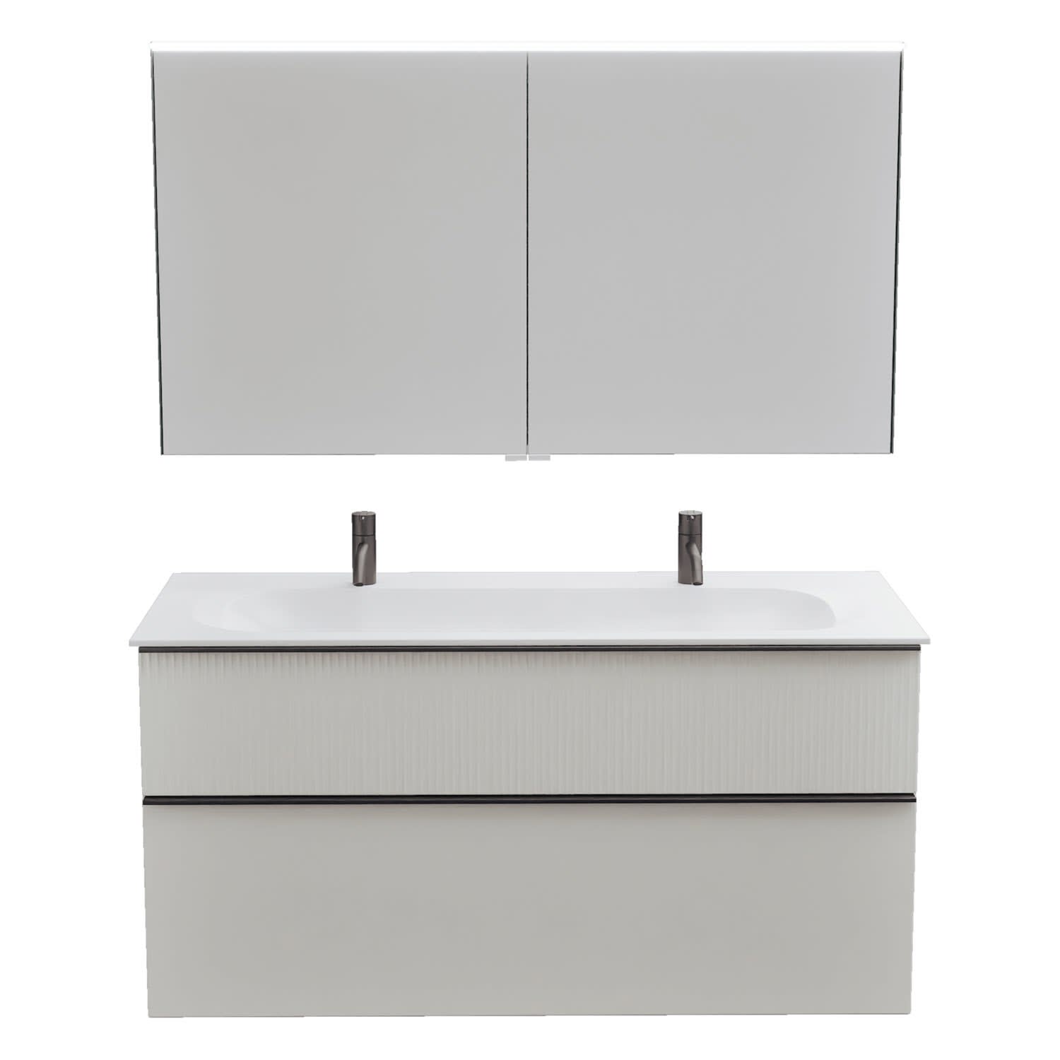 burgbad Fiumo 2.0 Badmöbelset 122 cm mit Waschtisch mit Unterschrank mit Griff G0200 und Spiegelschrank