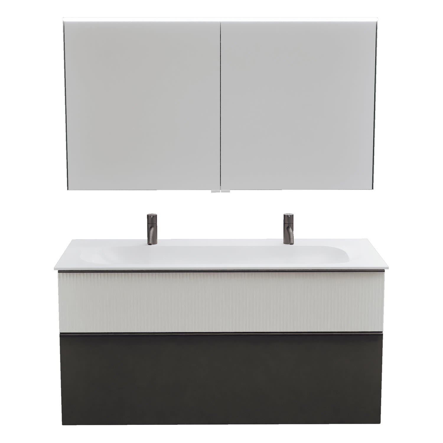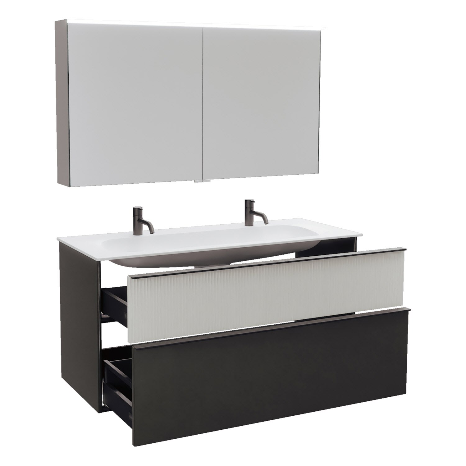 burgbad Fiumo 2.0 Badmöbelset 122 cm mit Waschtisch mit Unterschrank mit Griff G0200 und Spiegelschrank