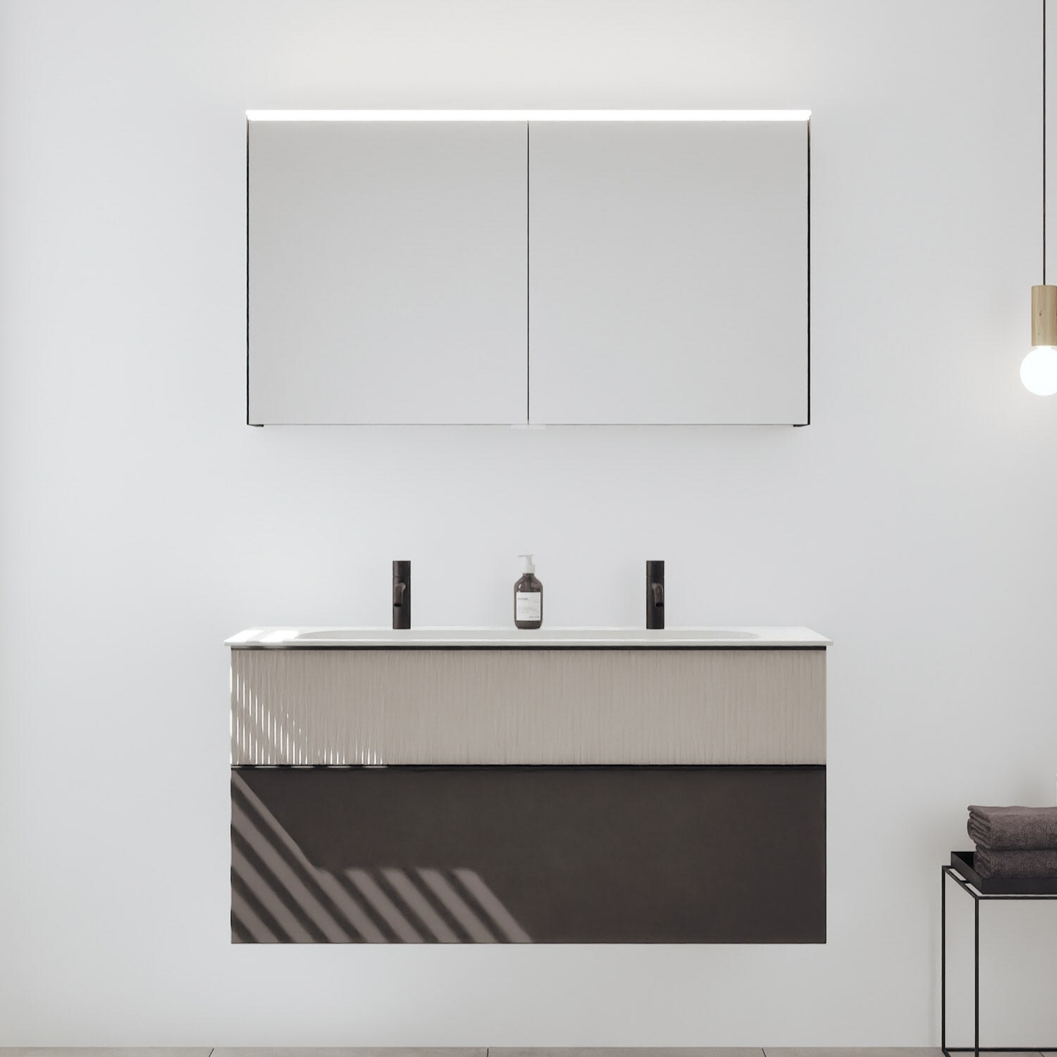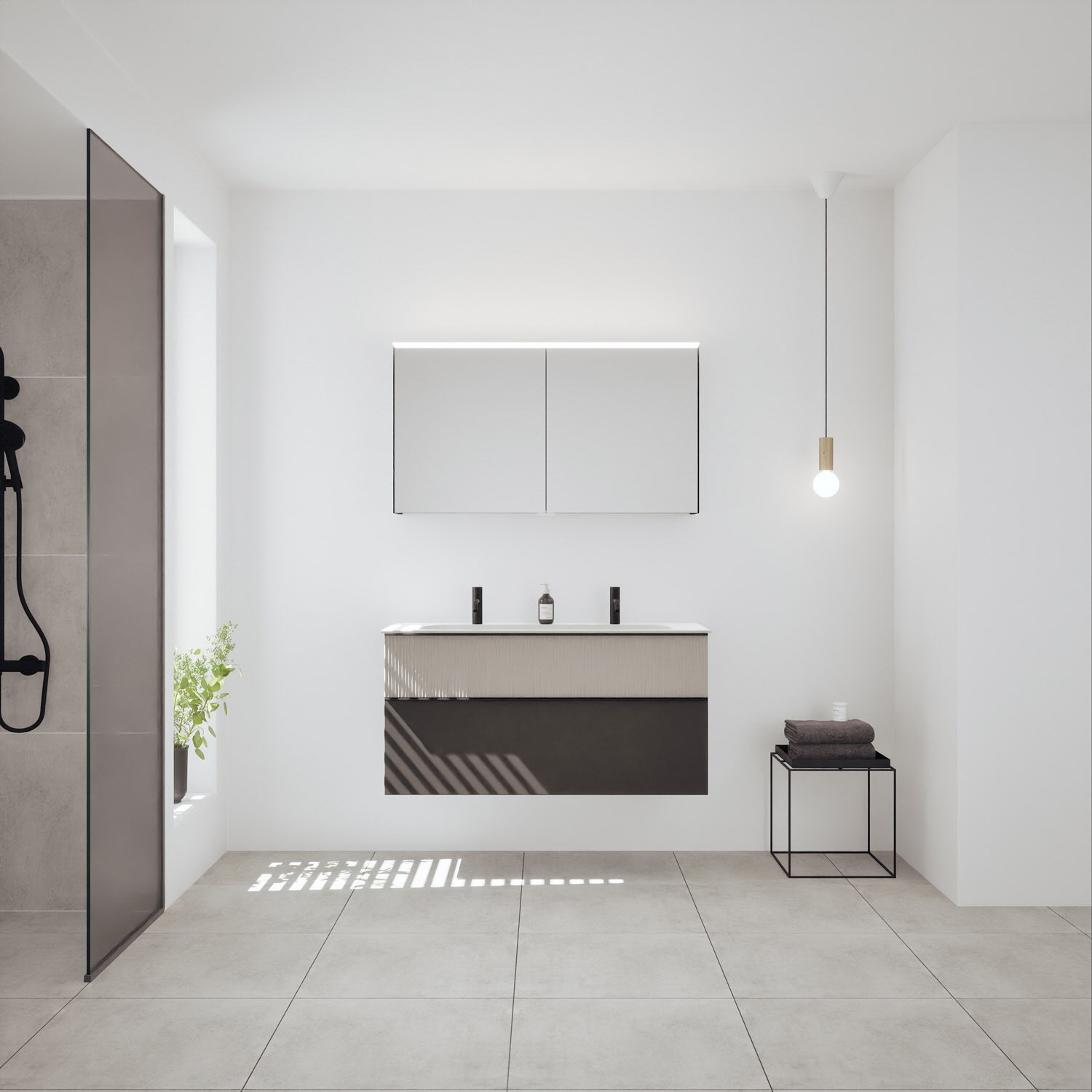 - Spiegelschrank, Waschtischunterschrank, Waschtisch,burgbad cleanFlow, Befestigung außer Stockschrauben