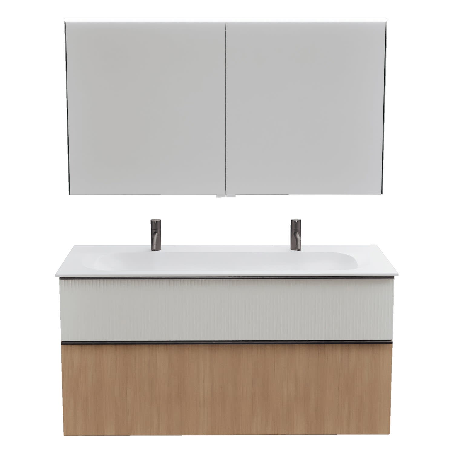 burgbad Fiumo 2.0 Badmöbelset 122 cm mit Waschtisch mit Unterschrank mit Griff G0200 und Spiegelschrank