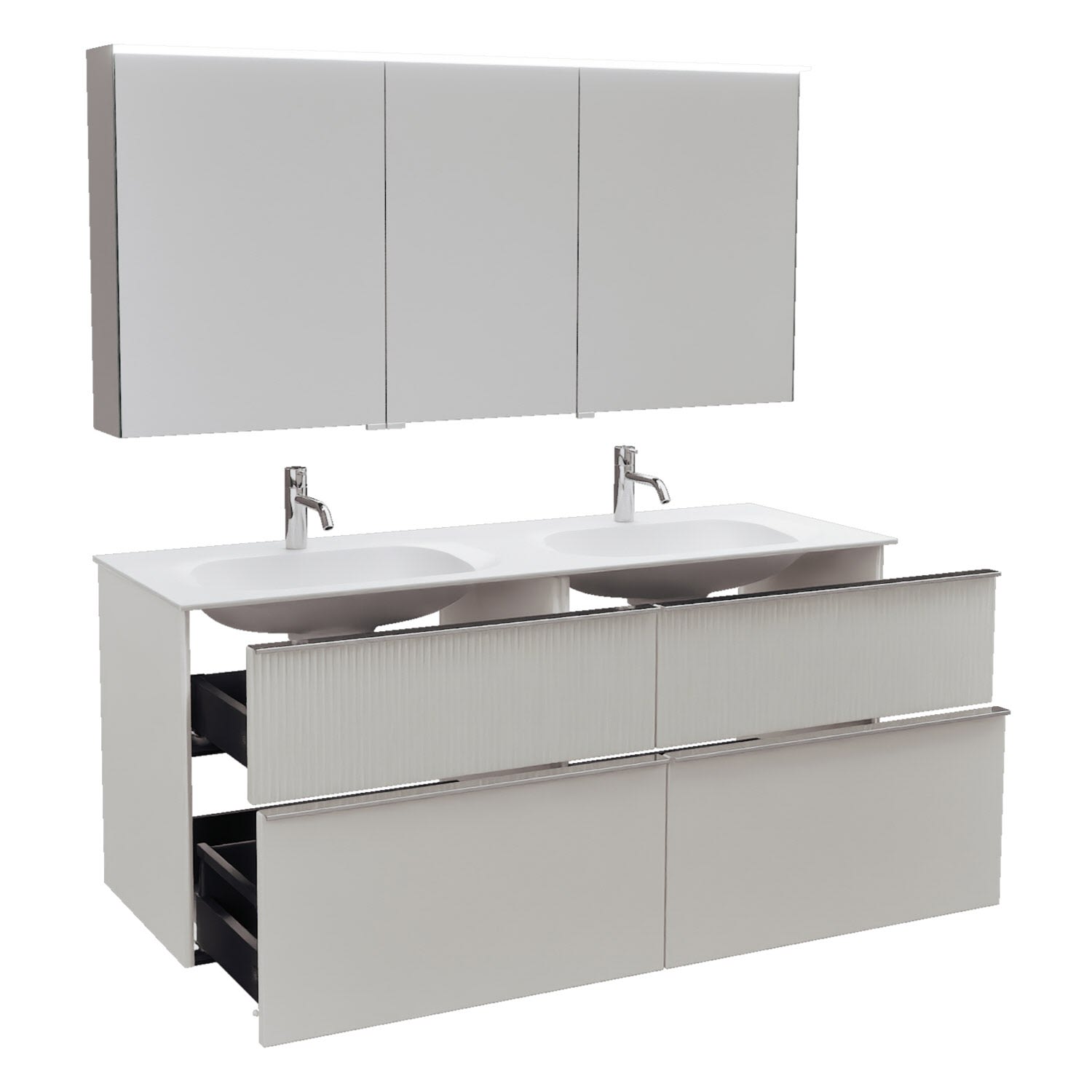 burgbad Fiumo 2.0 Badmöbelset 142 cm mit Waschtisch mit Unterschrank mit Griff G0146 und Spiegelschrank