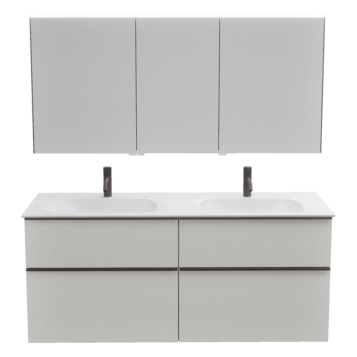 burgbad Fiumo 2.0 Badmöbelset 142 cm mit Waschtisch mit Unterschrank mit Griff G0200 und Spiegelschrank