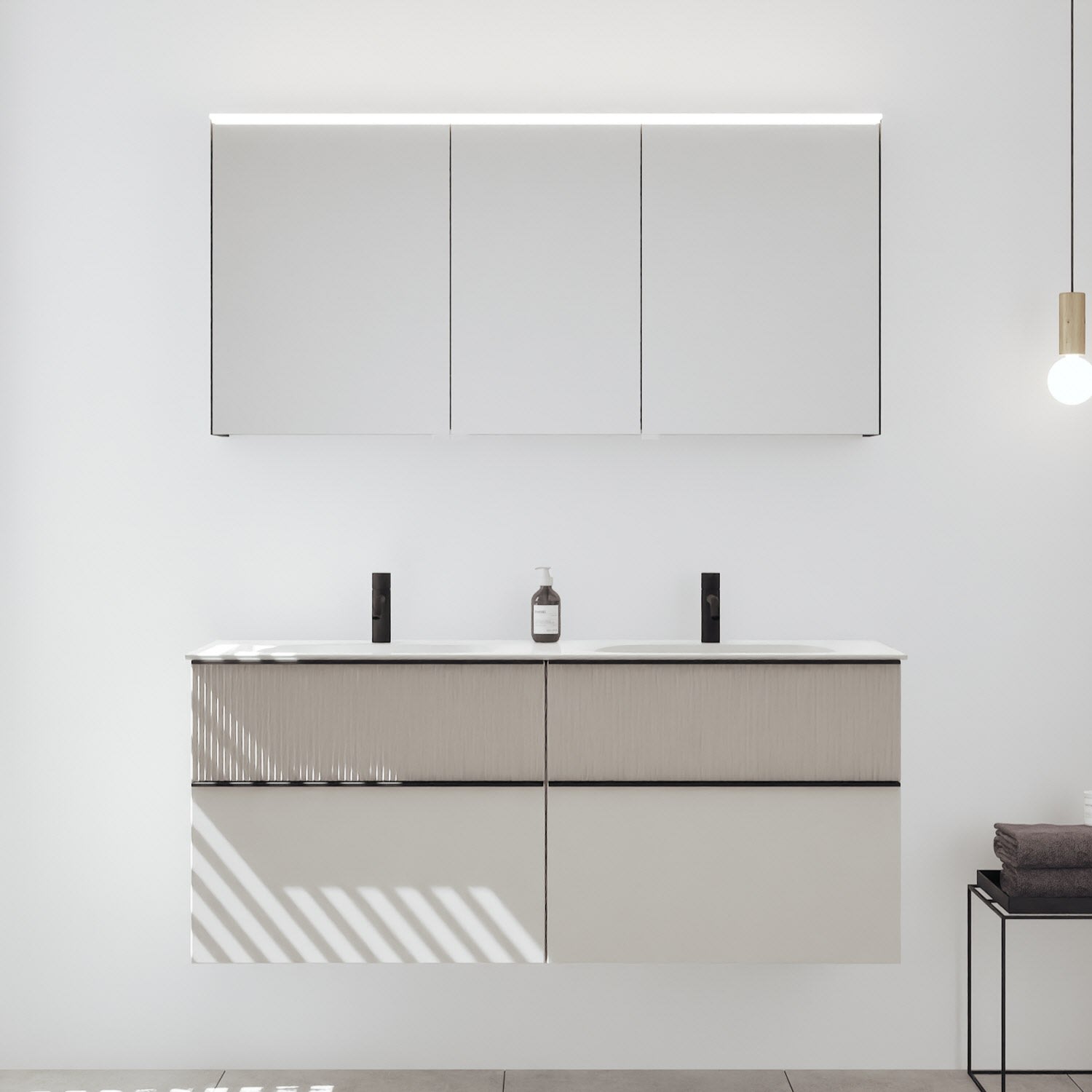 - Spiegelschrank, Waschtischunterschrank, Waschtisch,burgbad cleanFlow, Befestigung außer Stockschrauben