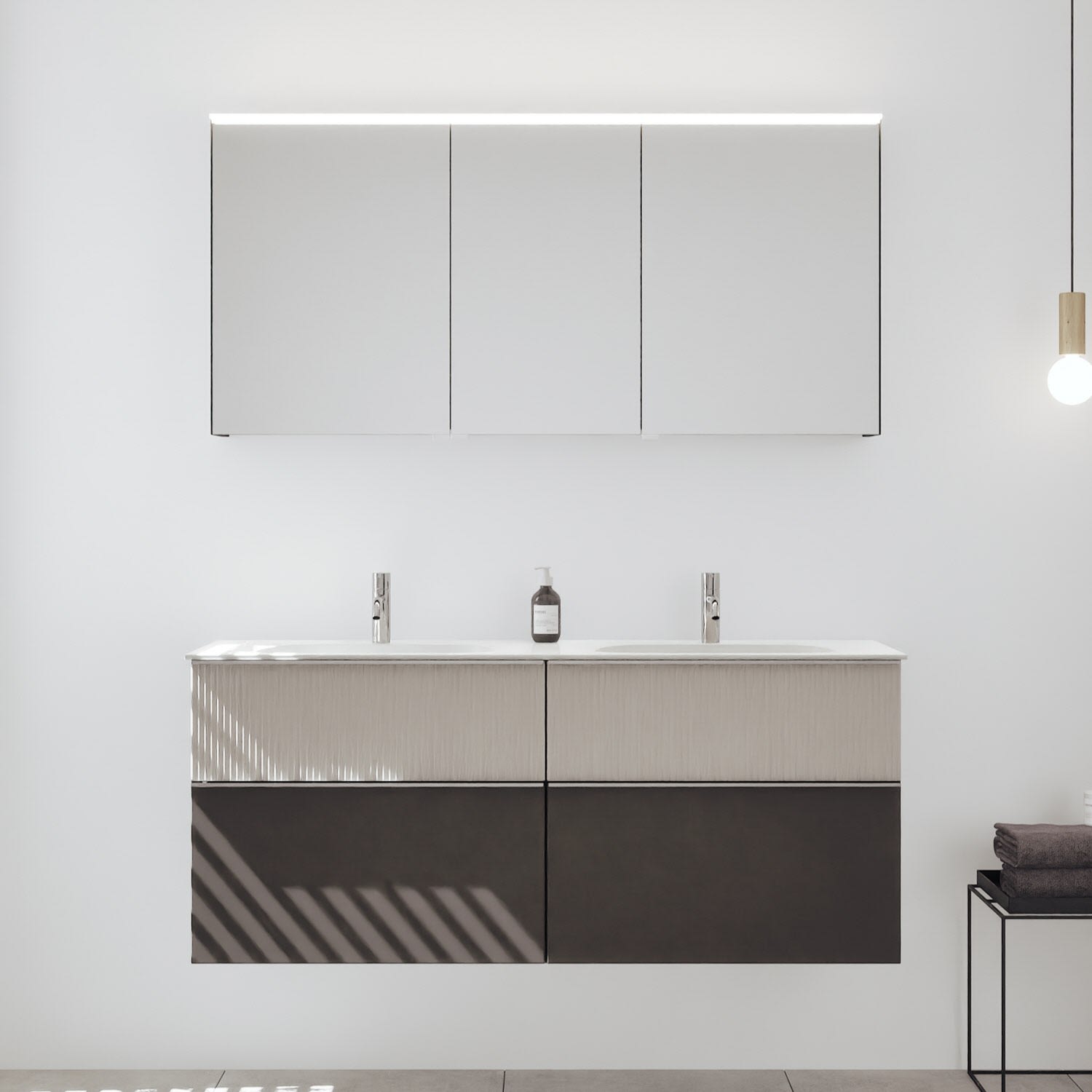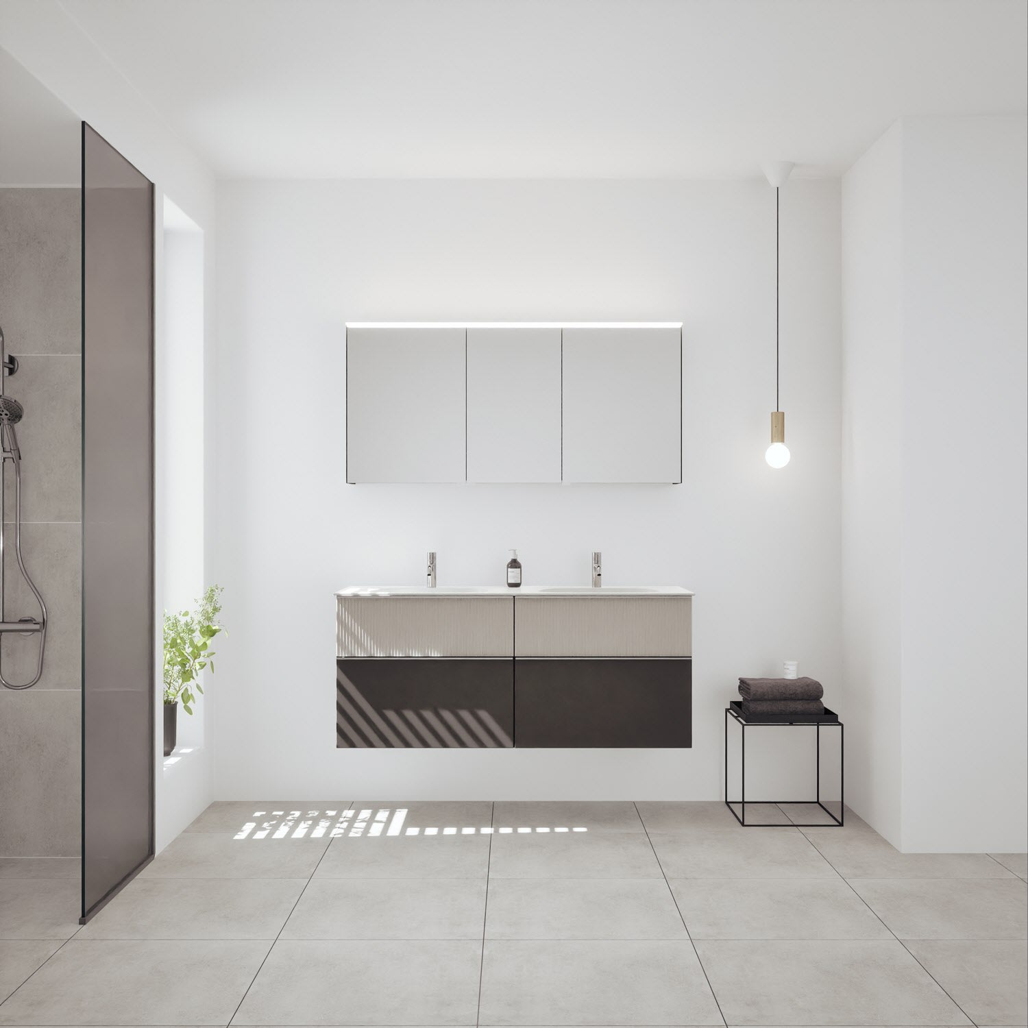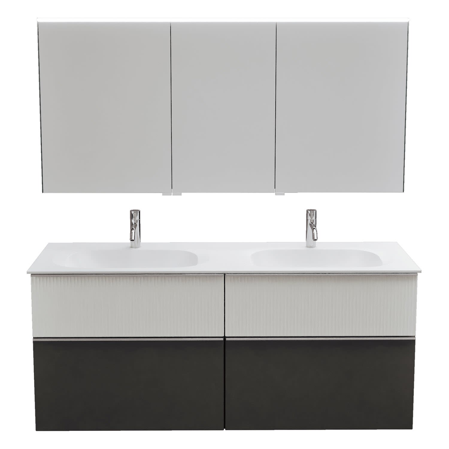 burgbad Fiumo 2.0 Badmöbelset 142 cm mit Waschtisch mit Unterschrank mit Griff G0146 und Spiegelschrank