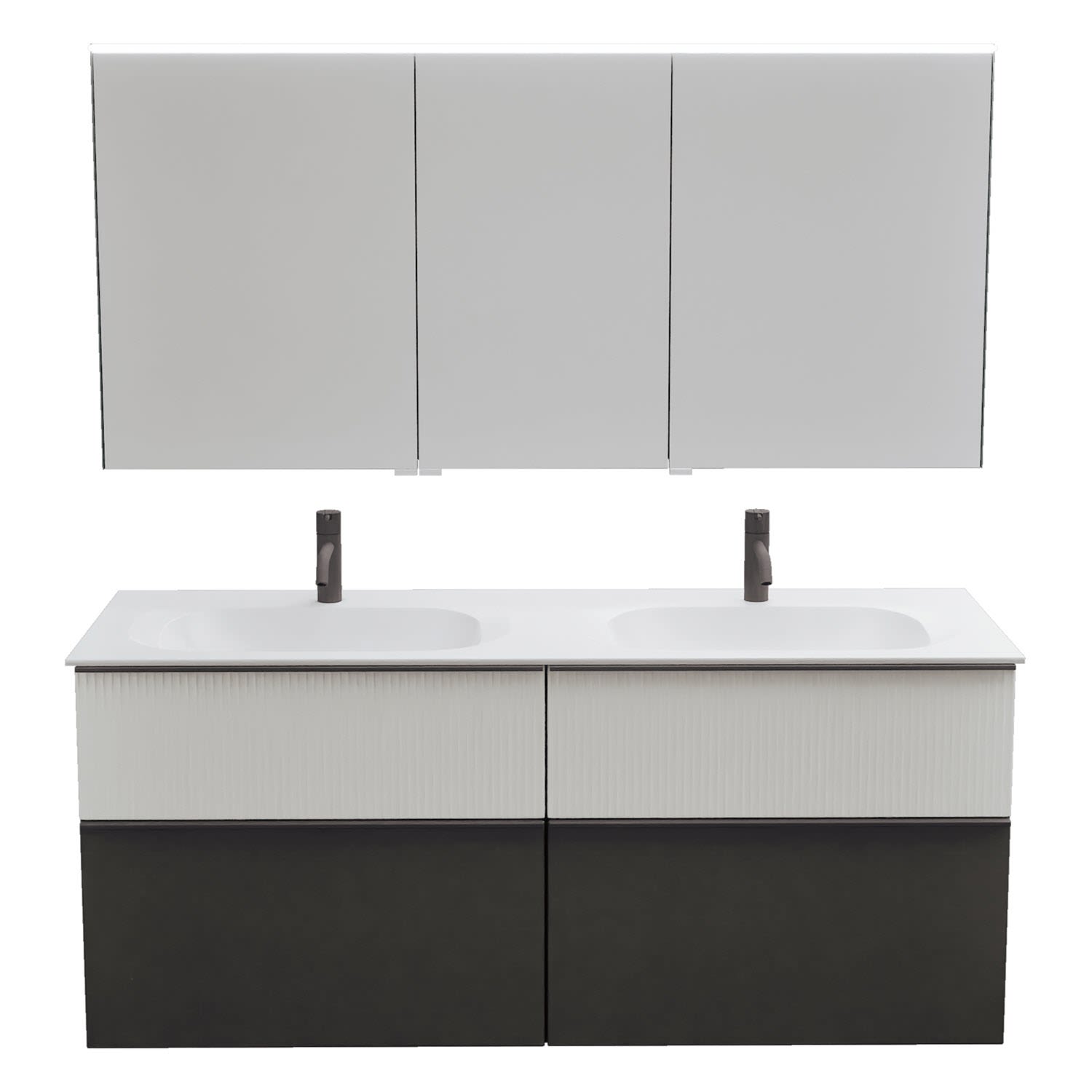 burgbad Fiumo 2.0 Badmöbelset 142 cm mit Waschtisch mit Unterschrank mit Griff G0200 und Spiegelschrank