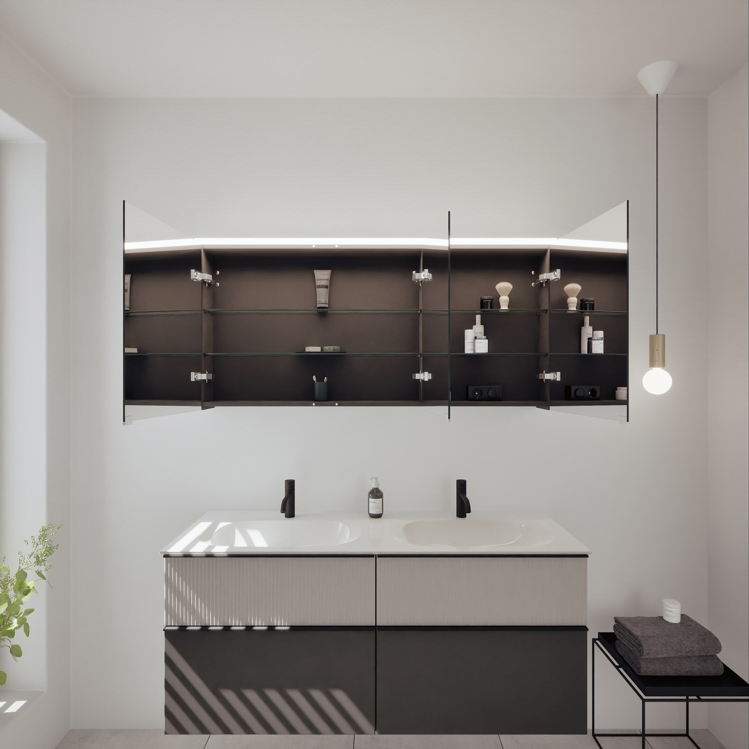 - Spiegelschrank, Waschtischunterschrank, Waschtisch,burgbad cleanFlow, Befestigung außer Stockschrauben
