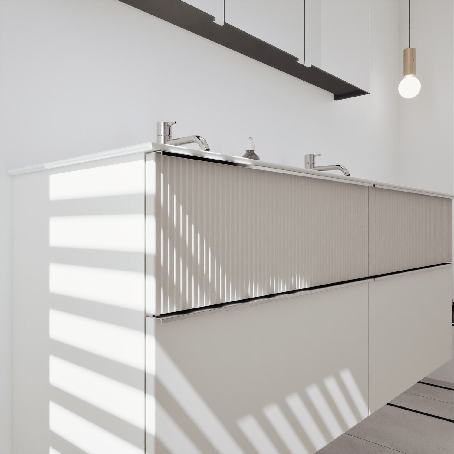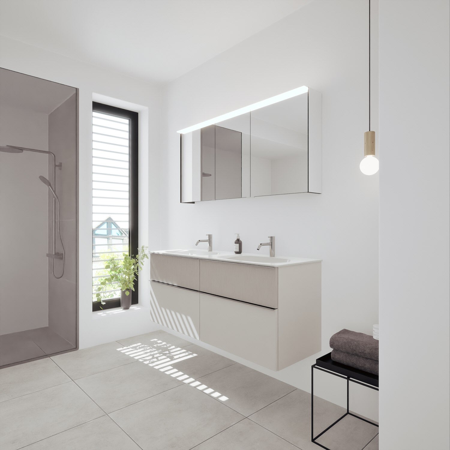burgbad Fiumo 2.0 Badmöbelset 142 cm mit Waschtisch mit Unterschrank mit Griff G0146 und Spiegelschrank