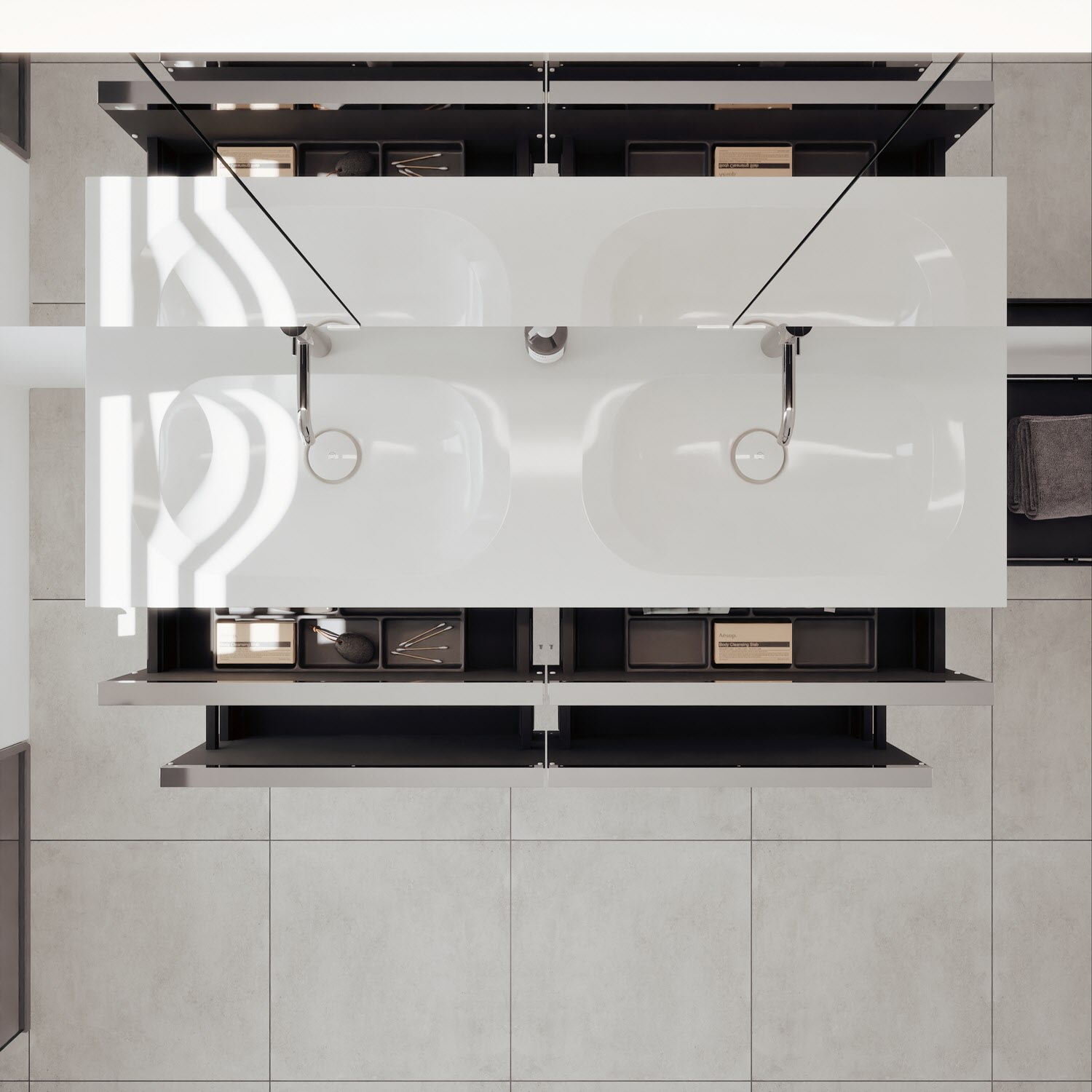 - Spiegelschrank, Waschtischunterschrank, Waschtisch,burgbad cleanFlow, Befestigung außer Stockschrauben