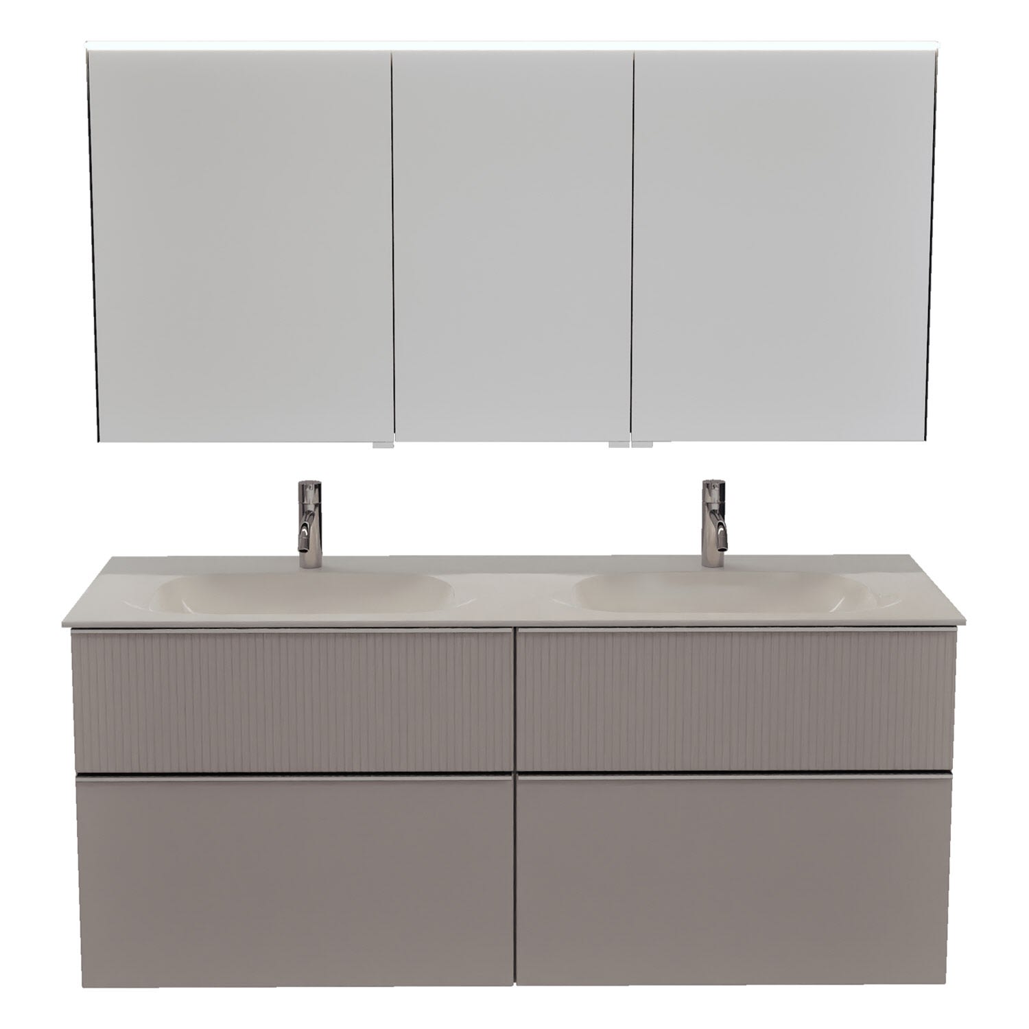 burgbad Fiumo 2.0 Badmöbelset 142 cm mit Waschtisch mit Unterschrank mit Griff G0146 und Spiegelschrank