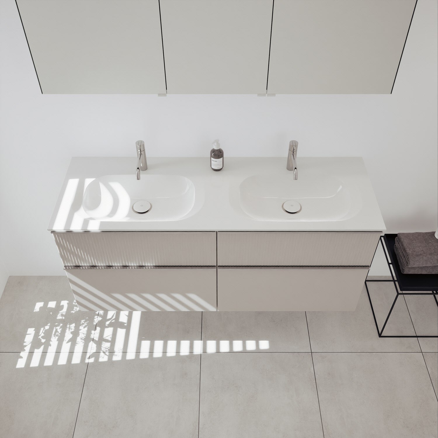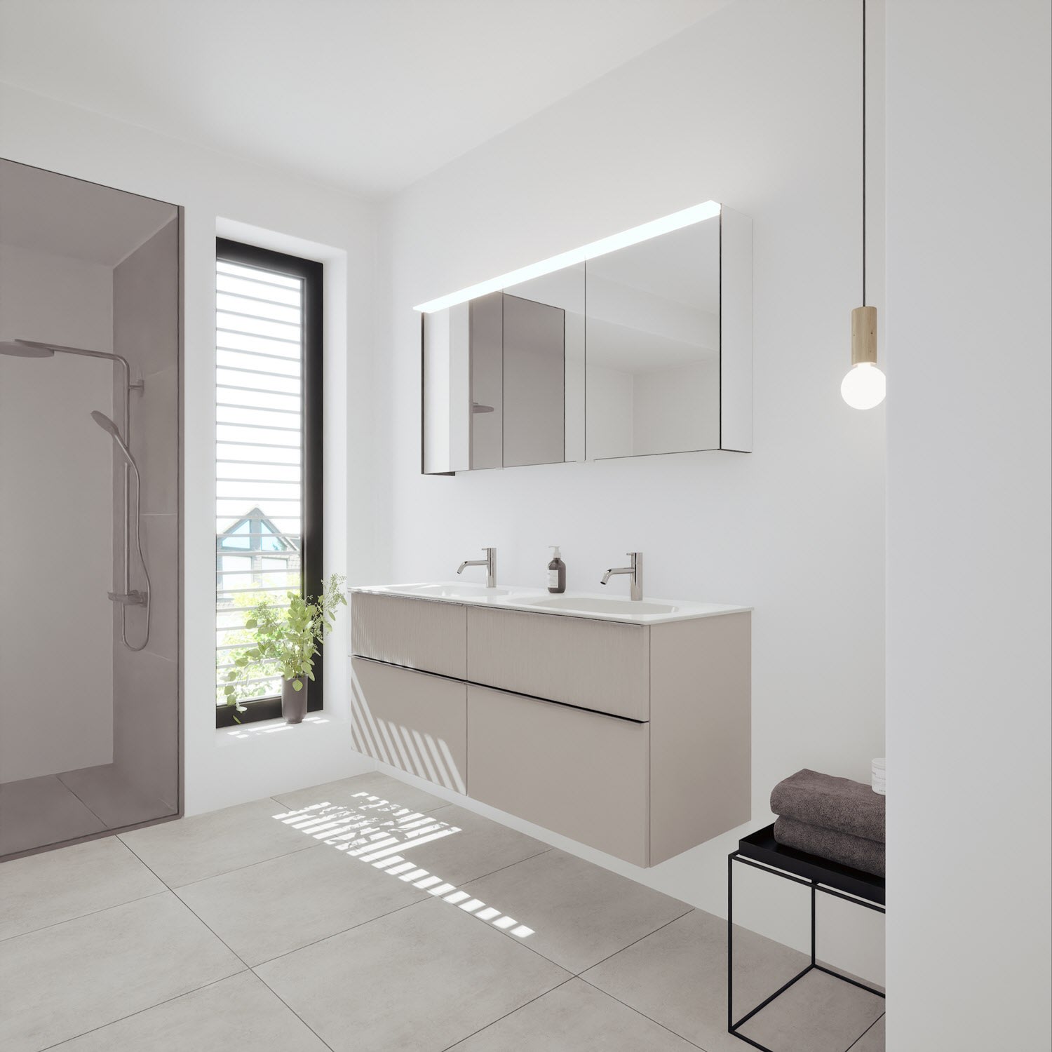 - Spiegelschrank, Waschtischunterschrank, Waschtisch,burgbad cleanFlow, Befestigung außer Stockschrauben