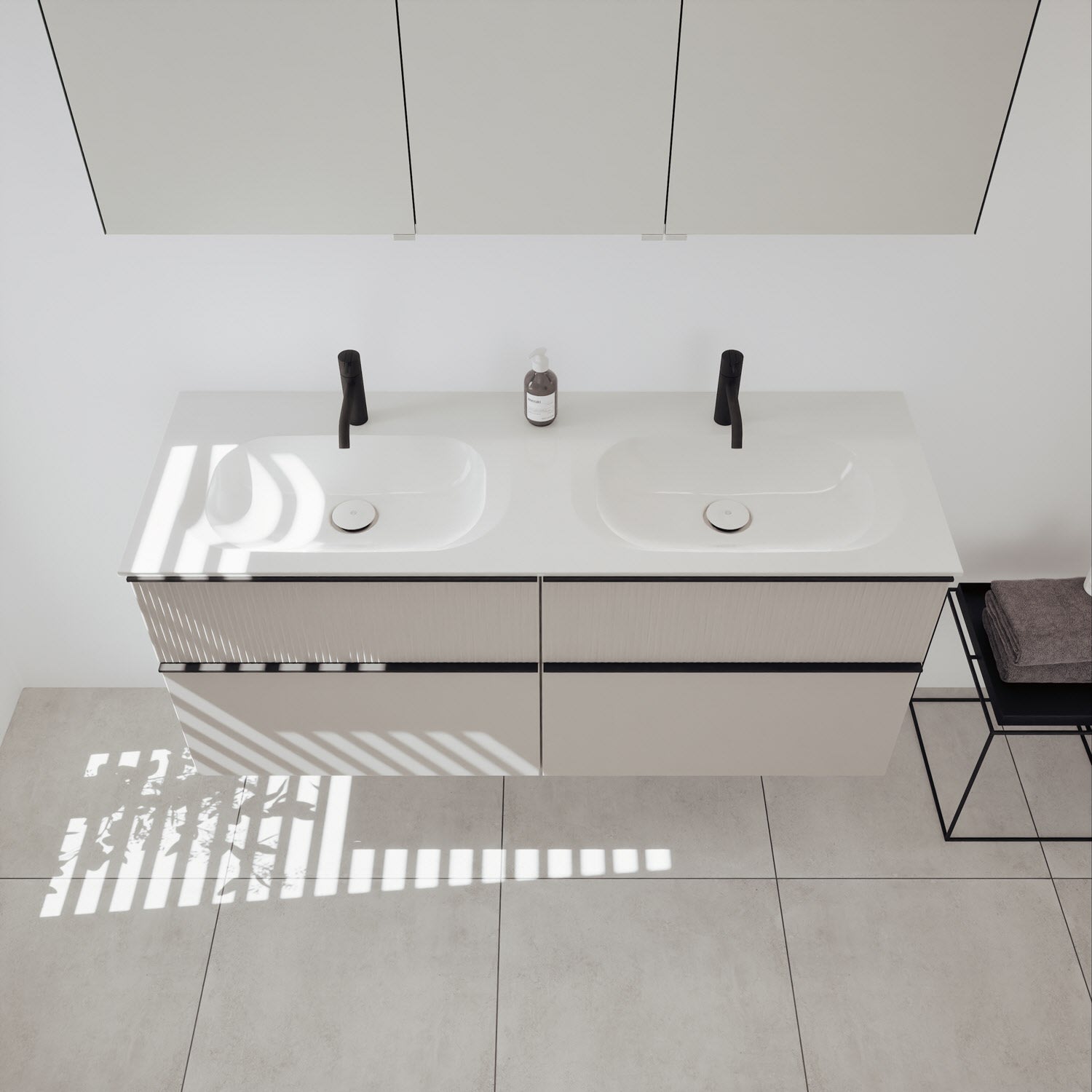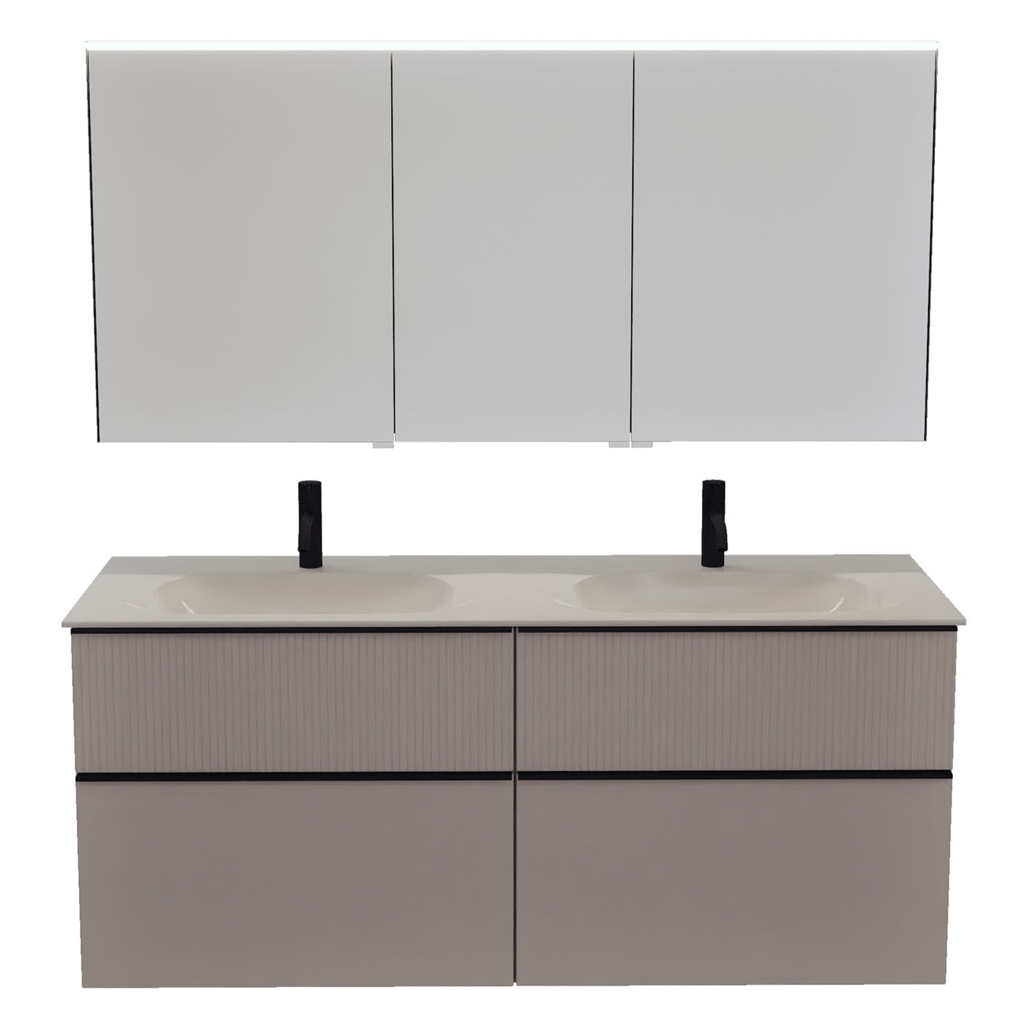 burgbad Fiumo 2.0 Badmöbelset 142 cm mit Waschtisch mit Unterschrank mit Griff G0200 und Spiegelschrank