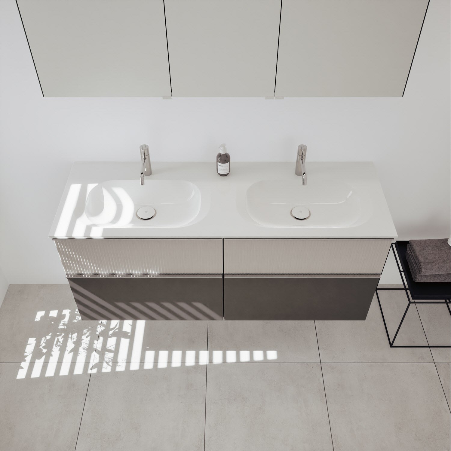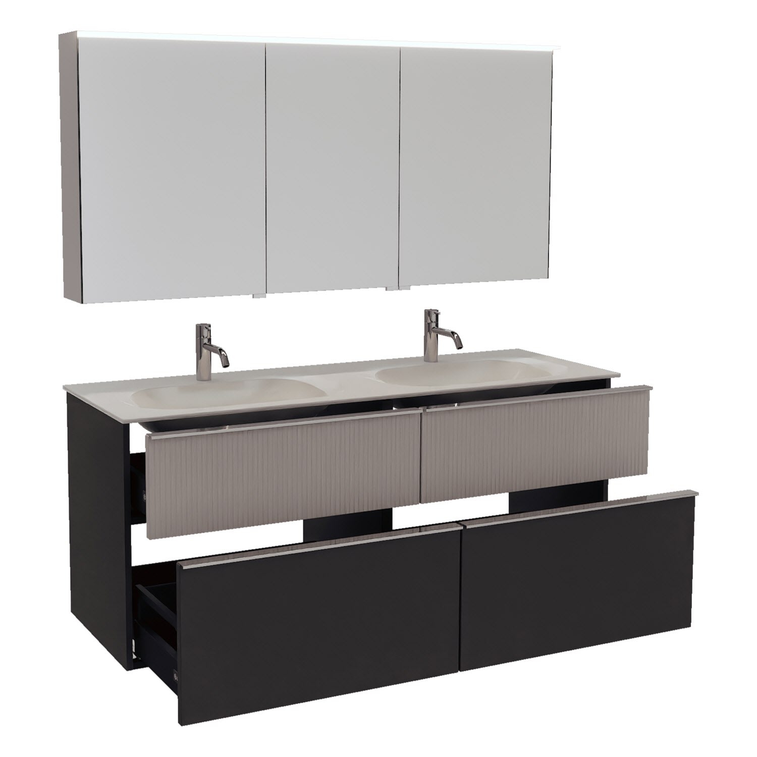 burgbad Fiumo 2.0 Badmöbelset 142 cm mit Waschtisch mit Unterschrank mit Griff G0146 und Spiegelschrank
