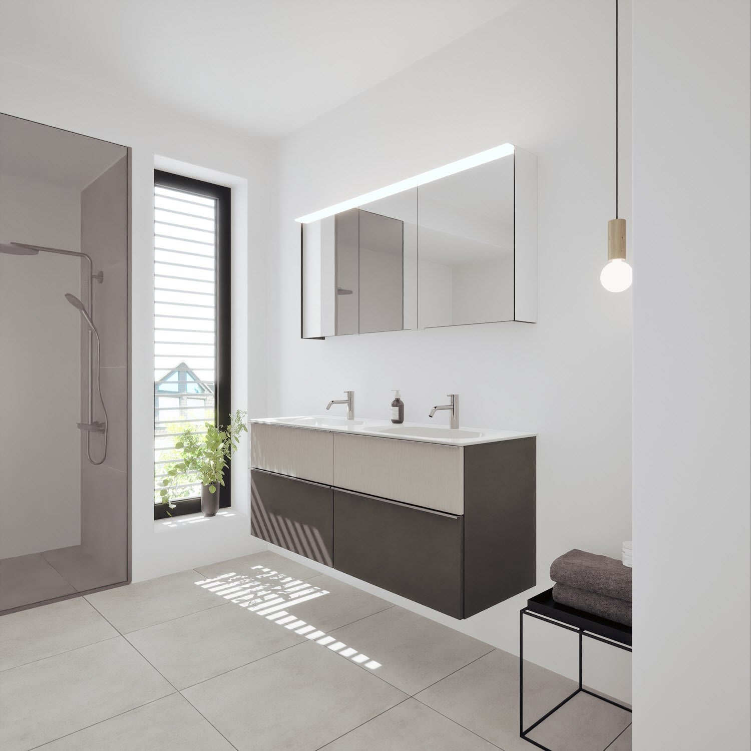- Spiegelschrank, Waschtischunterschrank, Waschtisch,burgbad cleanFlow, Befestigung außer Stockschrauben