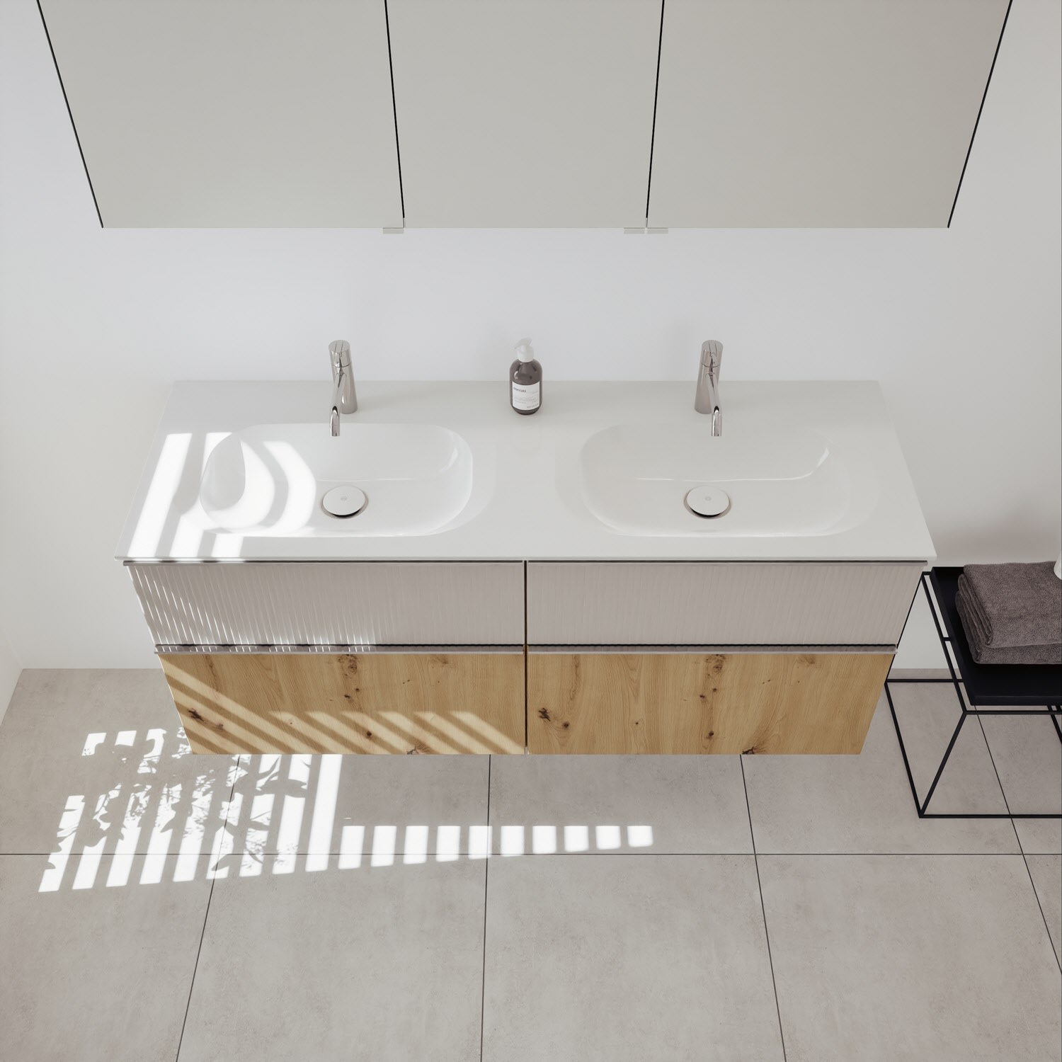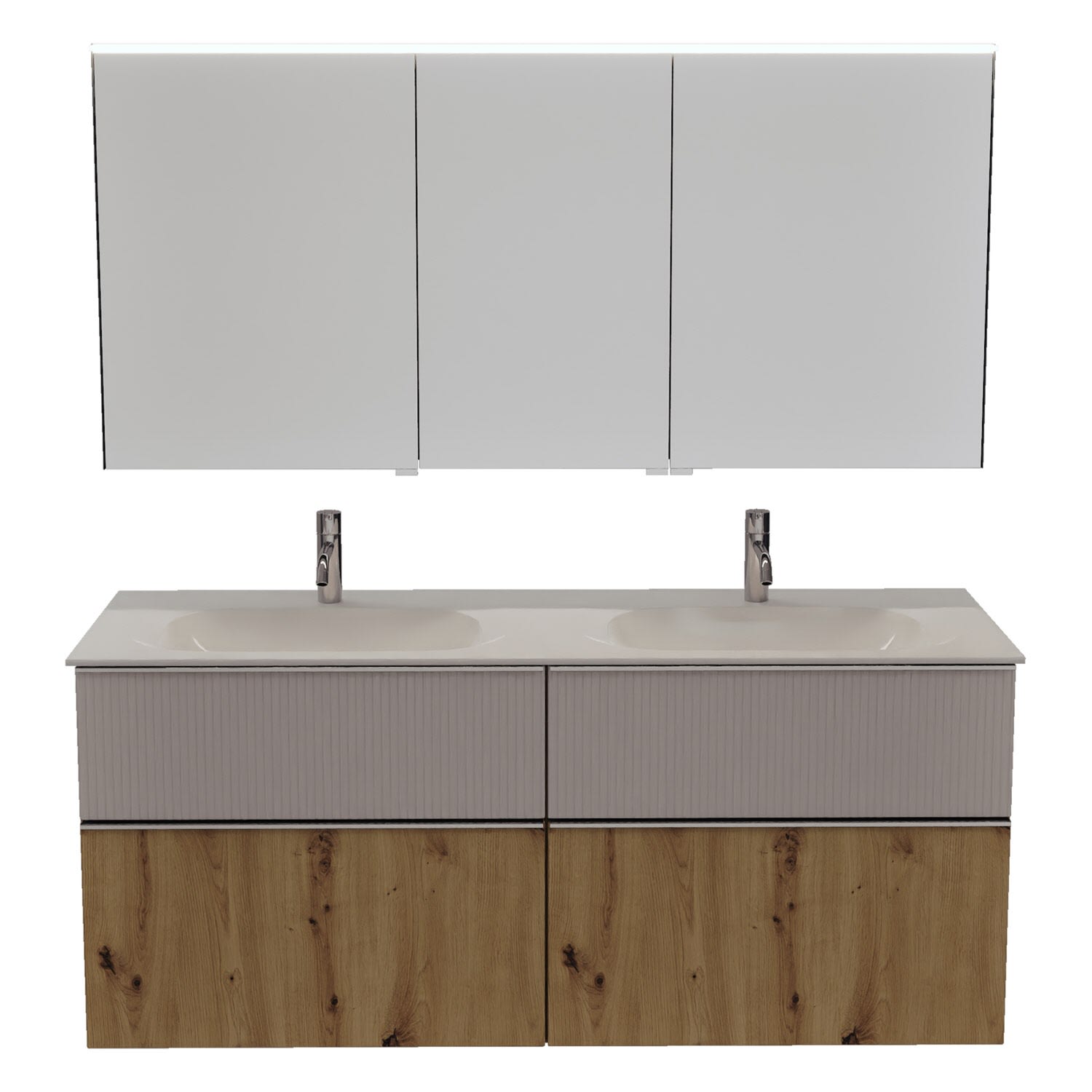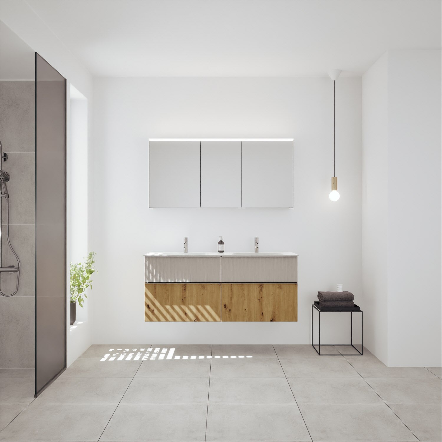 burgbad Fiumo 2.0 Badmöbelset 142 cm mit Waschtisch mit Unterschrank mit Griff G0146 und Spiegelschrank